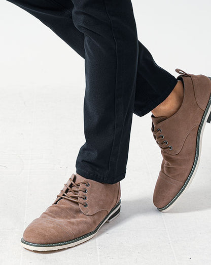 このシンプルデザインのスエードシューズは、上品なスエード素材と粋な色合いが魅力の大人のための紳士靴です。軽量ソールを採用し、約300gという軽さを実現しているため、長時間の移動でも疲れにくく、アクティブなライフスタイルを支えます。春夏秋冬問わず、様々なシーンで活躍するこのシューズは、カジュアルながらもきちんと感を演出できるので、ビジネスカジュアルや休日のリラックススタイルに最適です。グレー、ベージュ、ネイビーの3色展開は、どんなコーディネートにも柔軟に対応し、30代から50代の男性にふさわしい落ち着いた印象を与えます。シンプルだからこそ、着こなしの幅は広がり、センスの良さをさりげなく引き立ててくれるアイテムです。