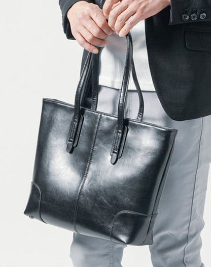ファスナー付き本革トートバッグは、ビジネスシーンからカジュアルな休日まで幅広く活躍する万能アイテムです。厚みのあるスプリットレザーを使用したこのバッグは、高級感あふれる質感を持ちつつ、シンプルなデザインで様々なスタイルにマッチします。A4サイズも楽に収容できるコンパクトなサイズ感は、通勤やデートにぴったりで、特にジャケットスタイルとの相性が抜群です。機能性にも優れ、ファスナーポケットを備えた間仕切りにより、貴重品や小物の整理が簡単です。更に、内側のジップポケットやオープンポケットを活用すれば、スマートな収納が実現します。肩掛けしやすい長めのハンドルデザインも魅力的で、スタイリッシュな印象を与えながら快適な使い心地を提供します。このトートバッグは、30代から50代の男性にこそ持ってほしいアイテムです。