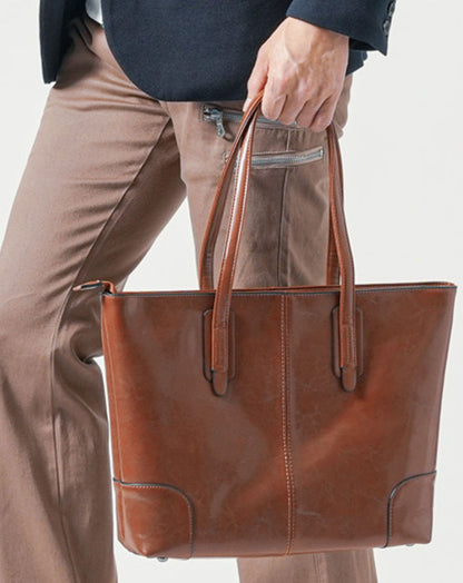 ”スプリットレザーを使ったシンプルなデザインの本革トートバッグ”