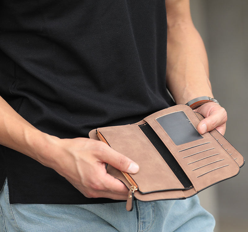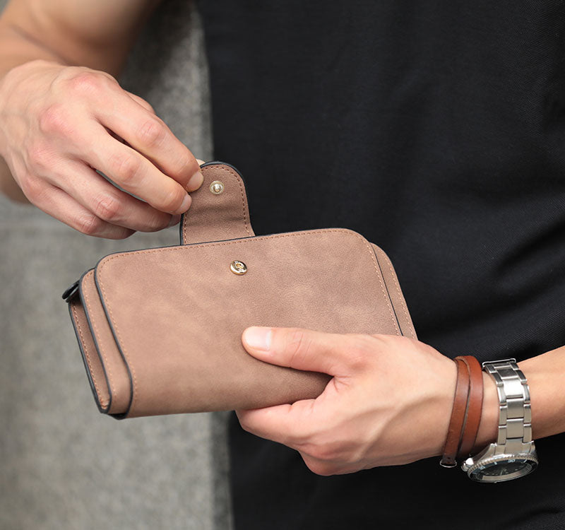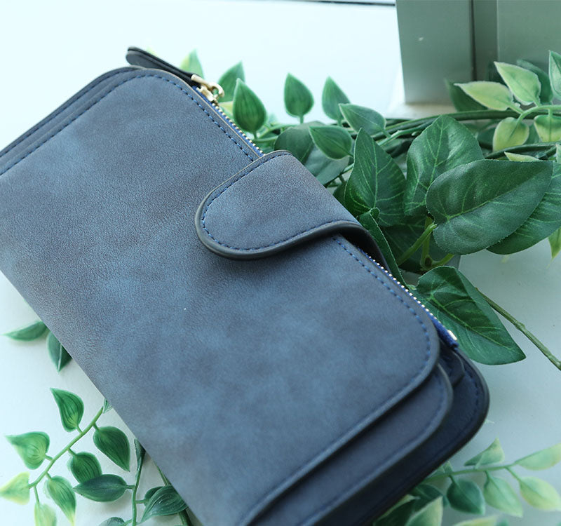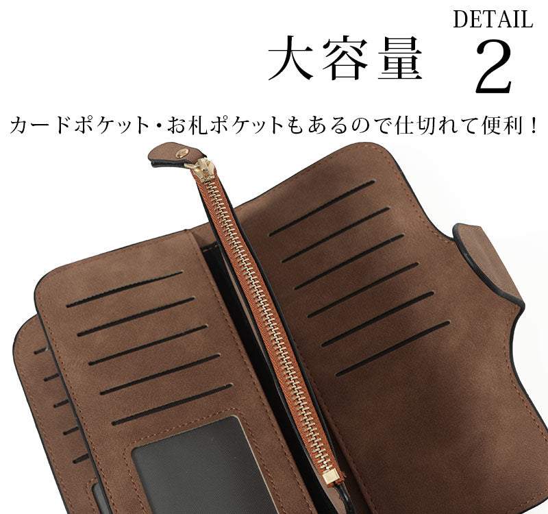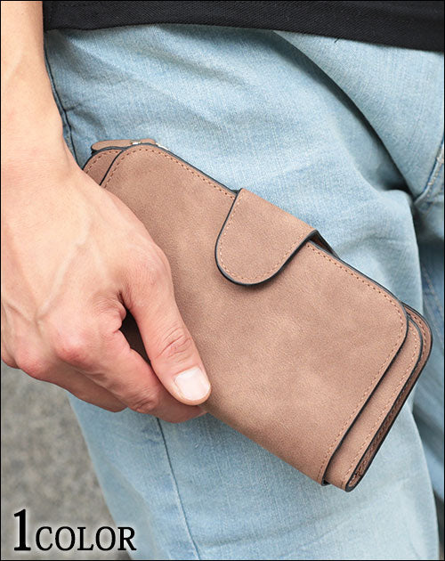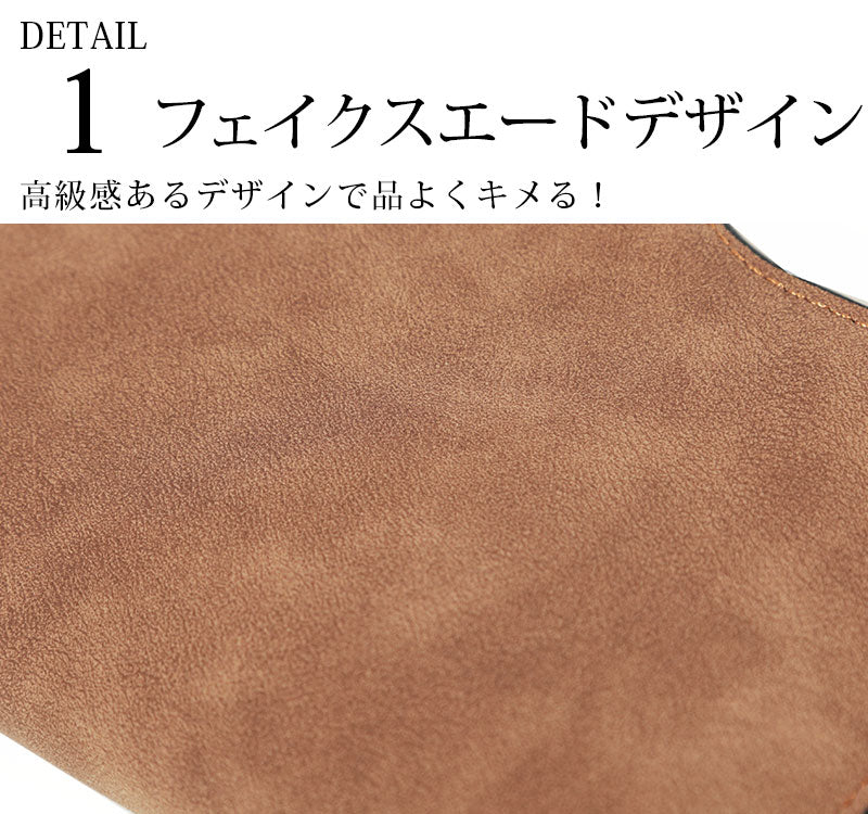 【品と高級感で大人っぽく魅せる!フェイクスエードがカッコ良い!】フェイクスエードデザインロングウォレット