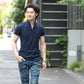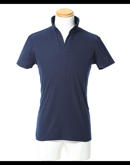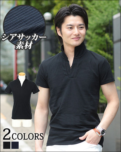【シアサッカー素材で爽やかに大人カッコ良くキメる!!】シアサッカー素材スキッパー半袖ポロシャツ