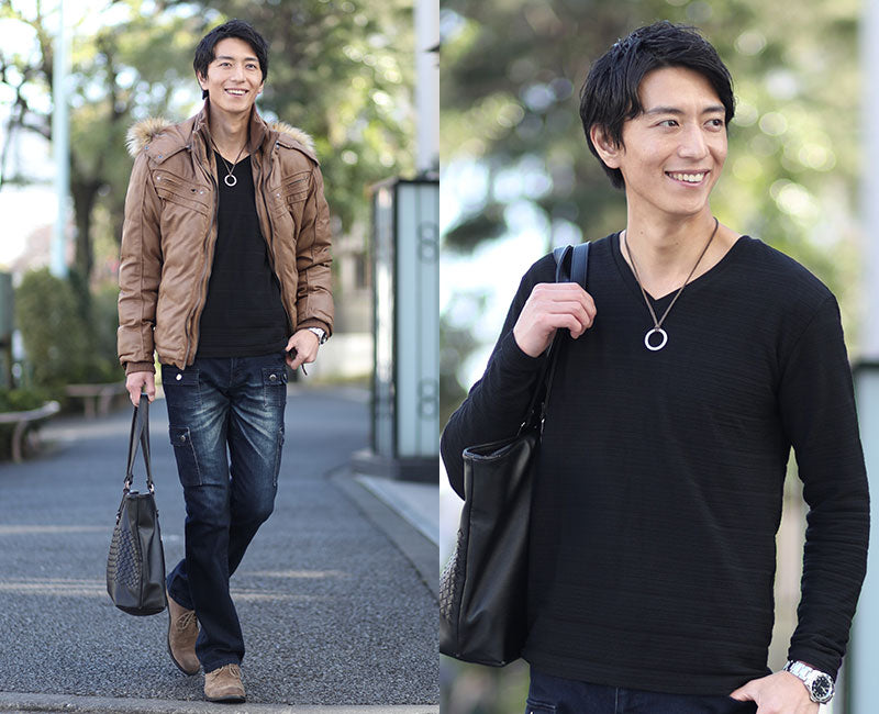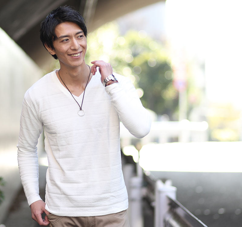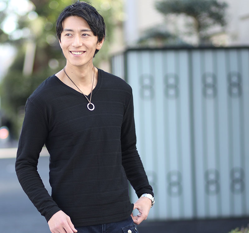 胸元は人気のVネック!程よく露出された胸元が男らしさを引き立ててくれます♪