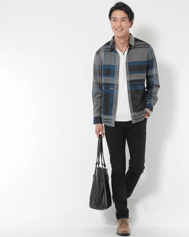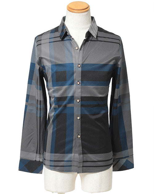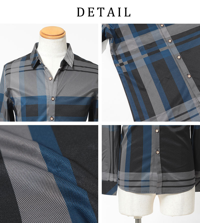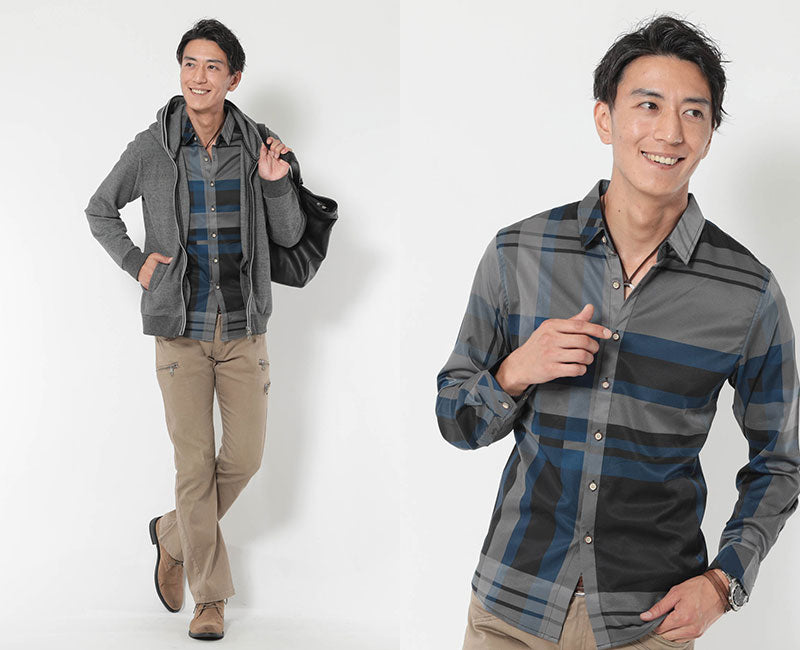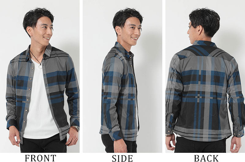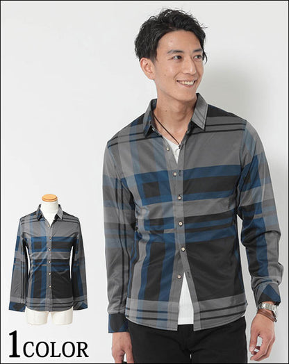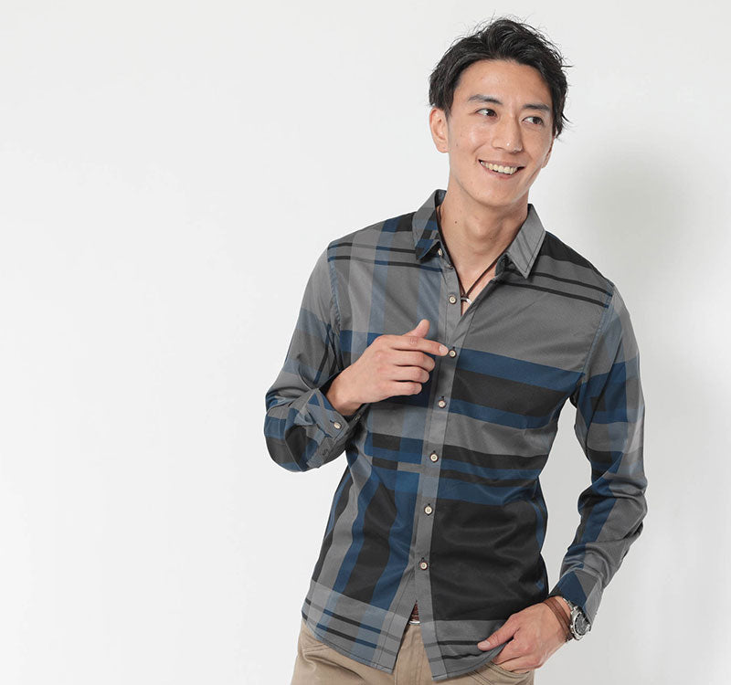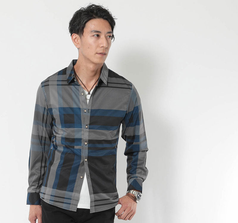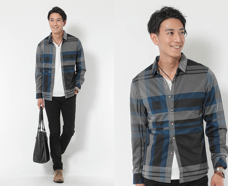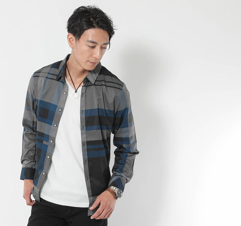 【カジュアル過ぎない高級感抜群の大人シャツ】ランダムチェックデザイン長袖シャツ