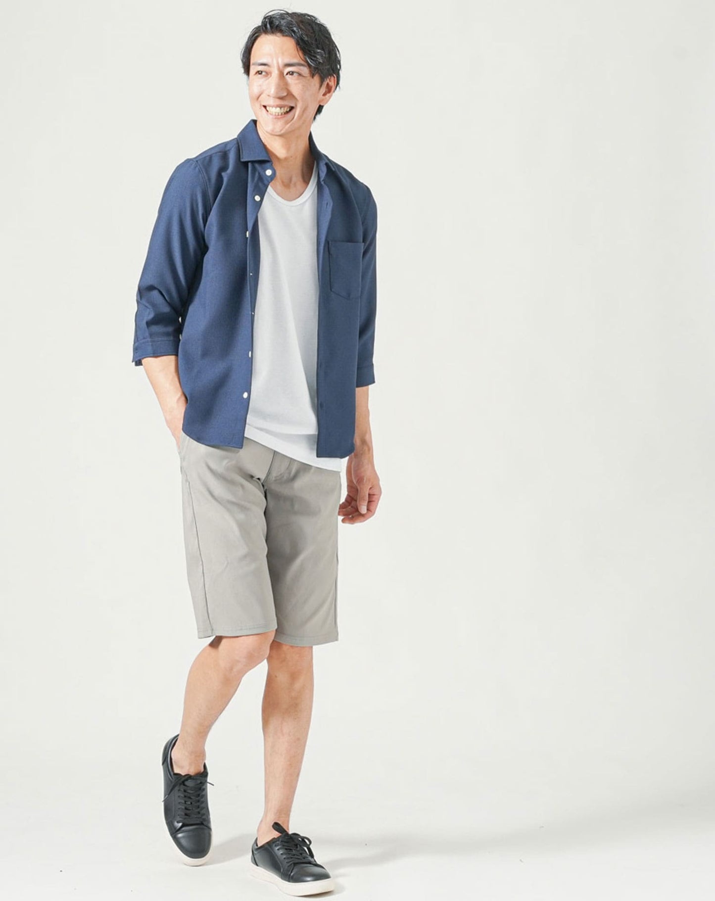 夏のメンズファッショに欠かせないチノハーフパンツです。ひんやり感じる接触冷感素材に加え、通常の2倍のストレッチを誇るスーパーストレッチなので快適かつ涼しい夏コーデをお楽しみいただけます。着こなしやすい黒と白をご用意しました。