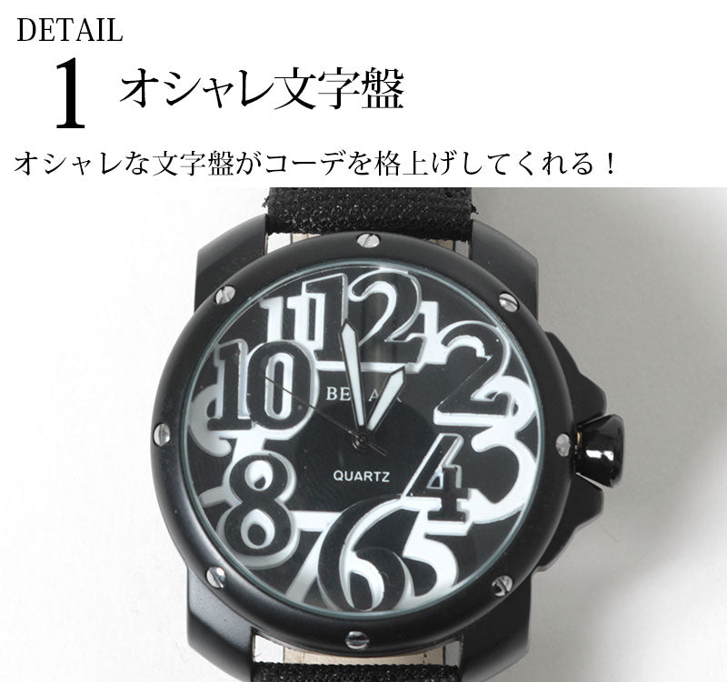 【デザイン性の高い文字盤がオシャレを格上げ!!】オシャレ文字盤デザインレザーベルトウォッチ