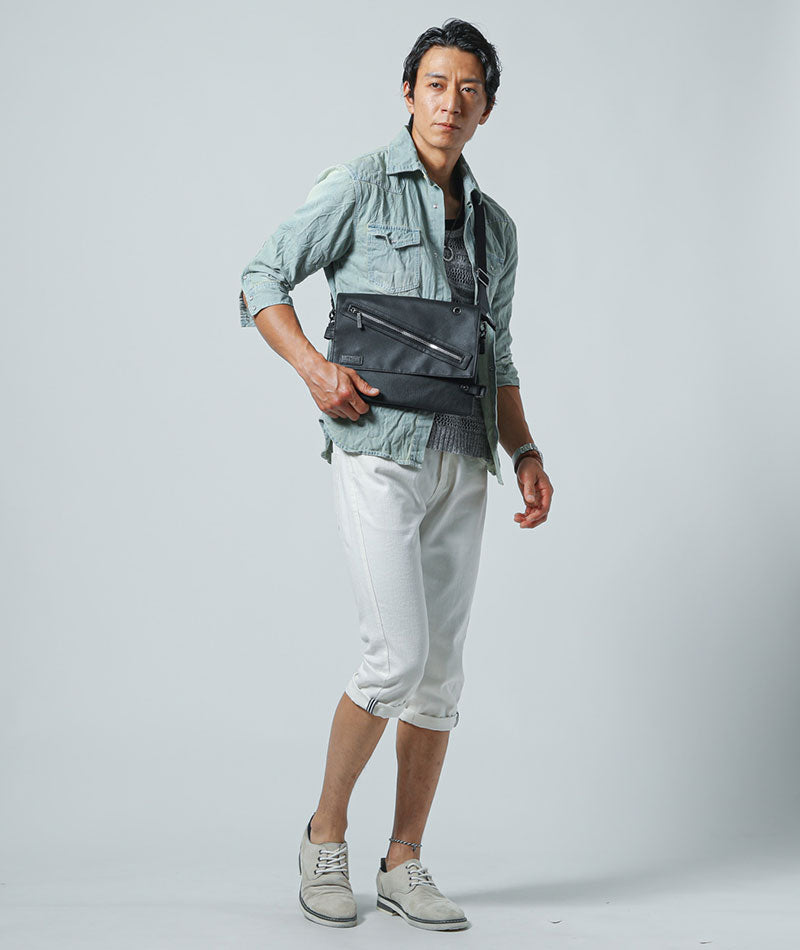 USBポート付きPUレザー2層式サイドベルトミニショルダーバッグ