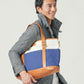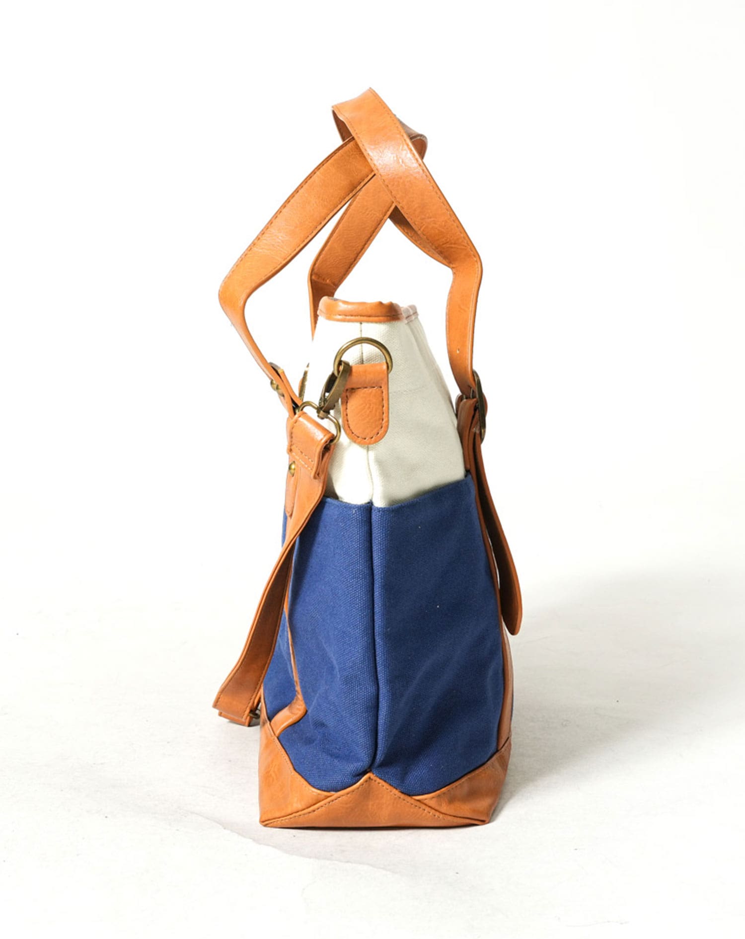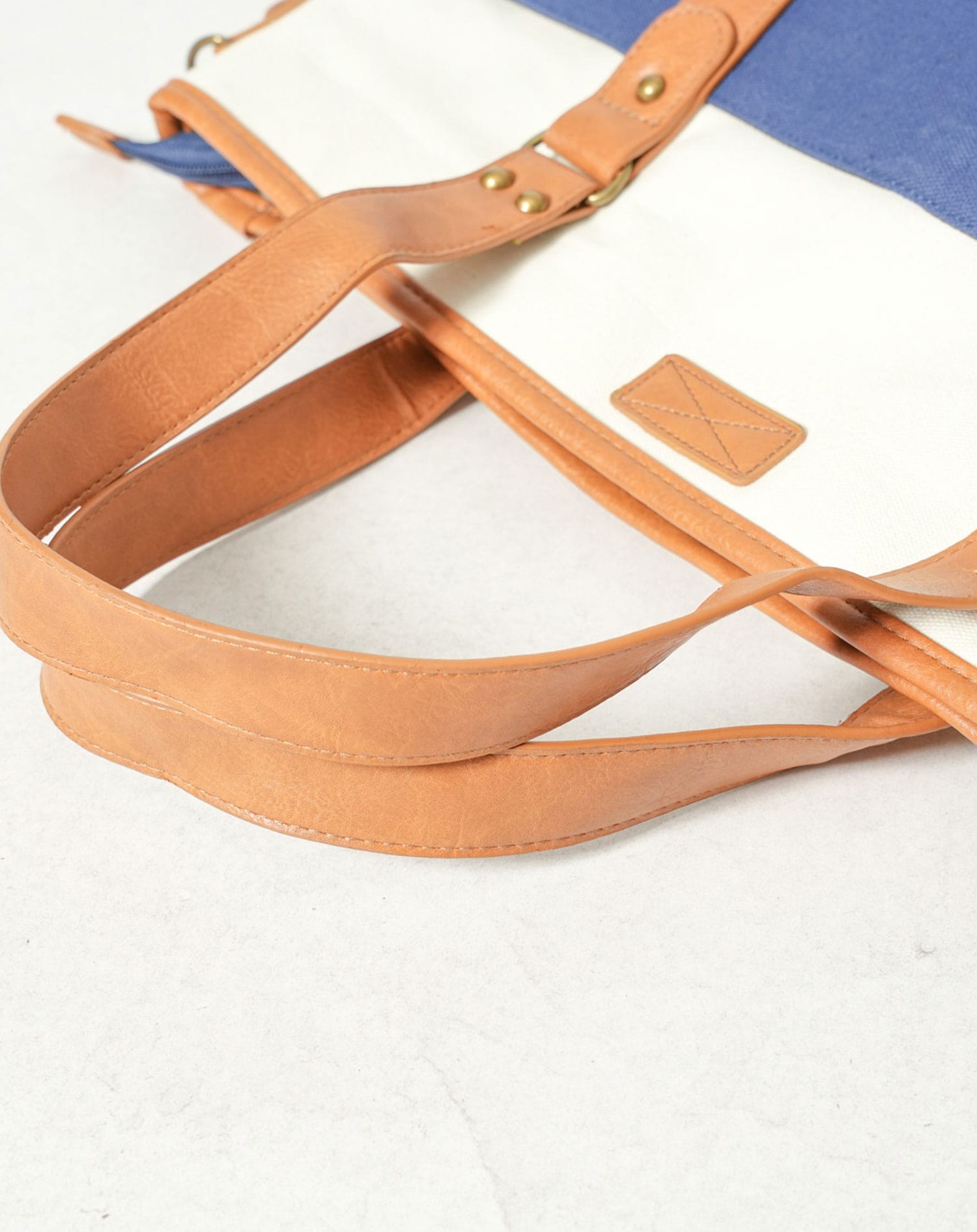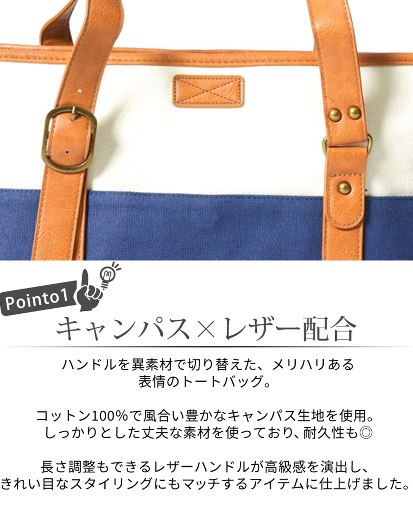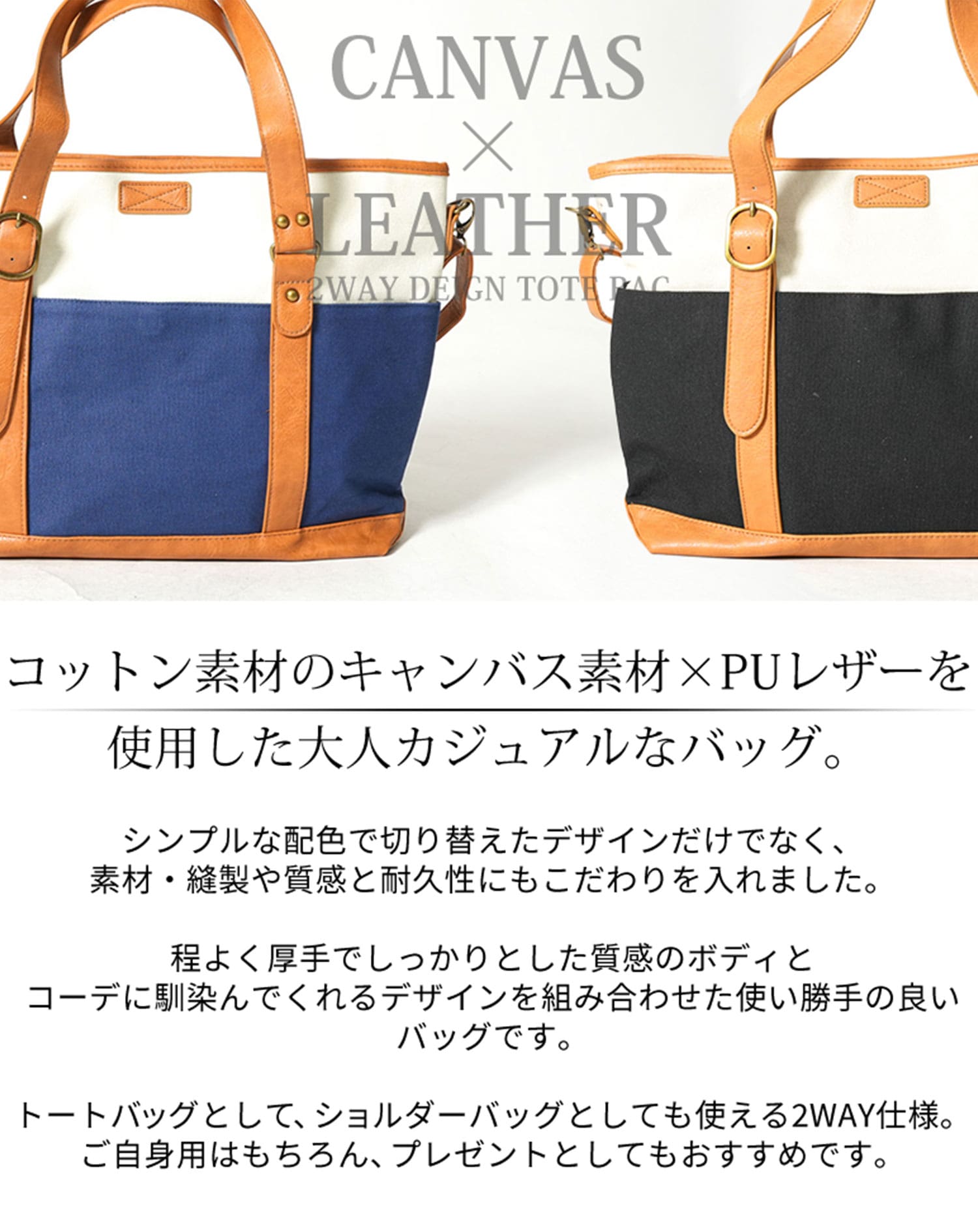 PUレザー×キャンバス切り替えファスナー付きショルダートートバッグ