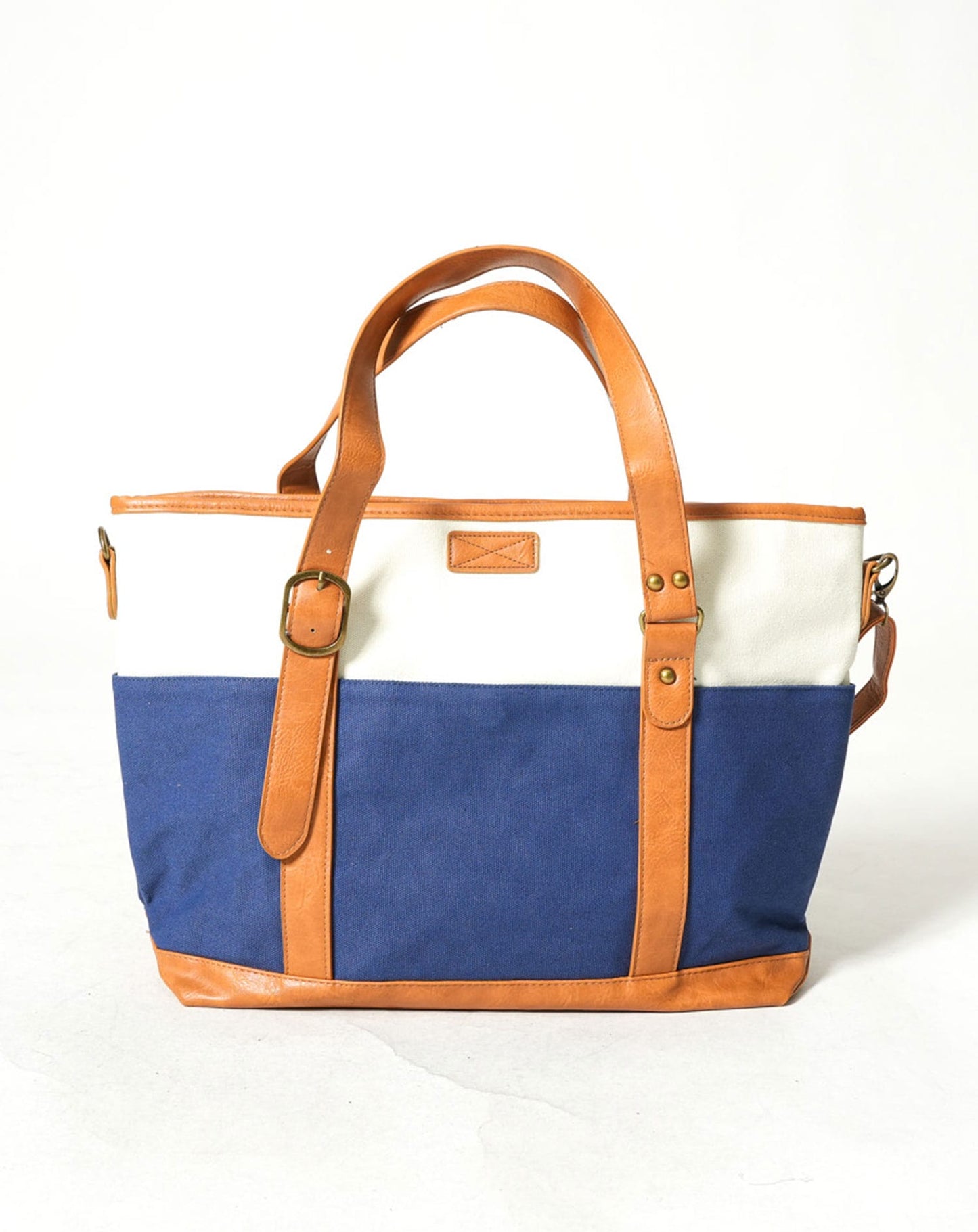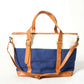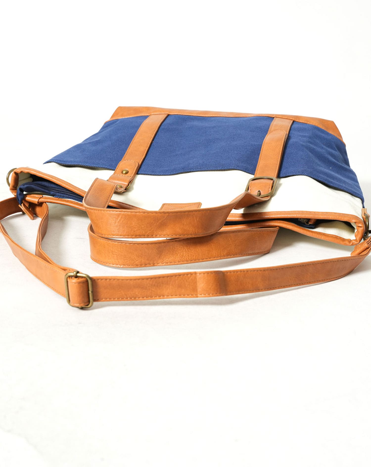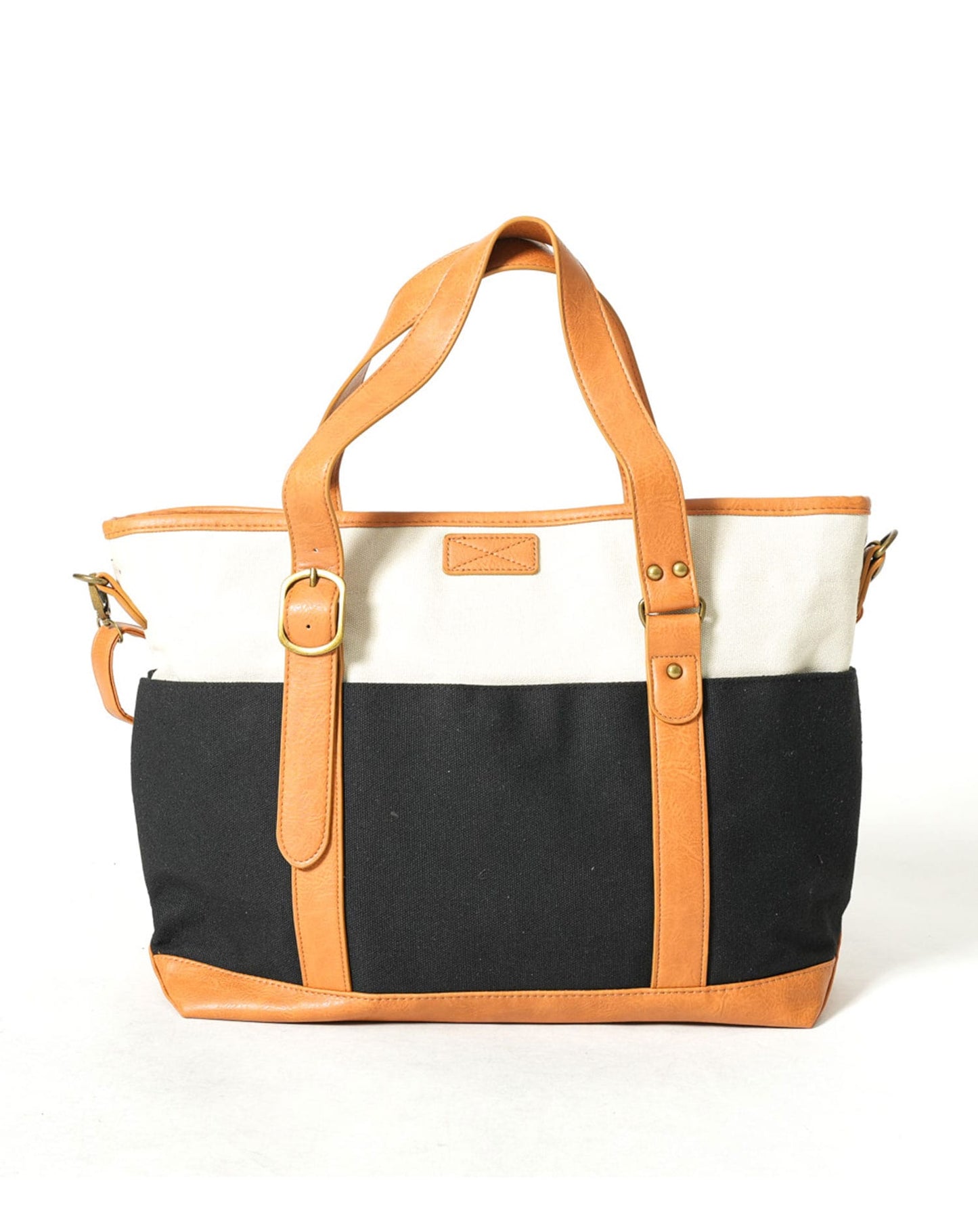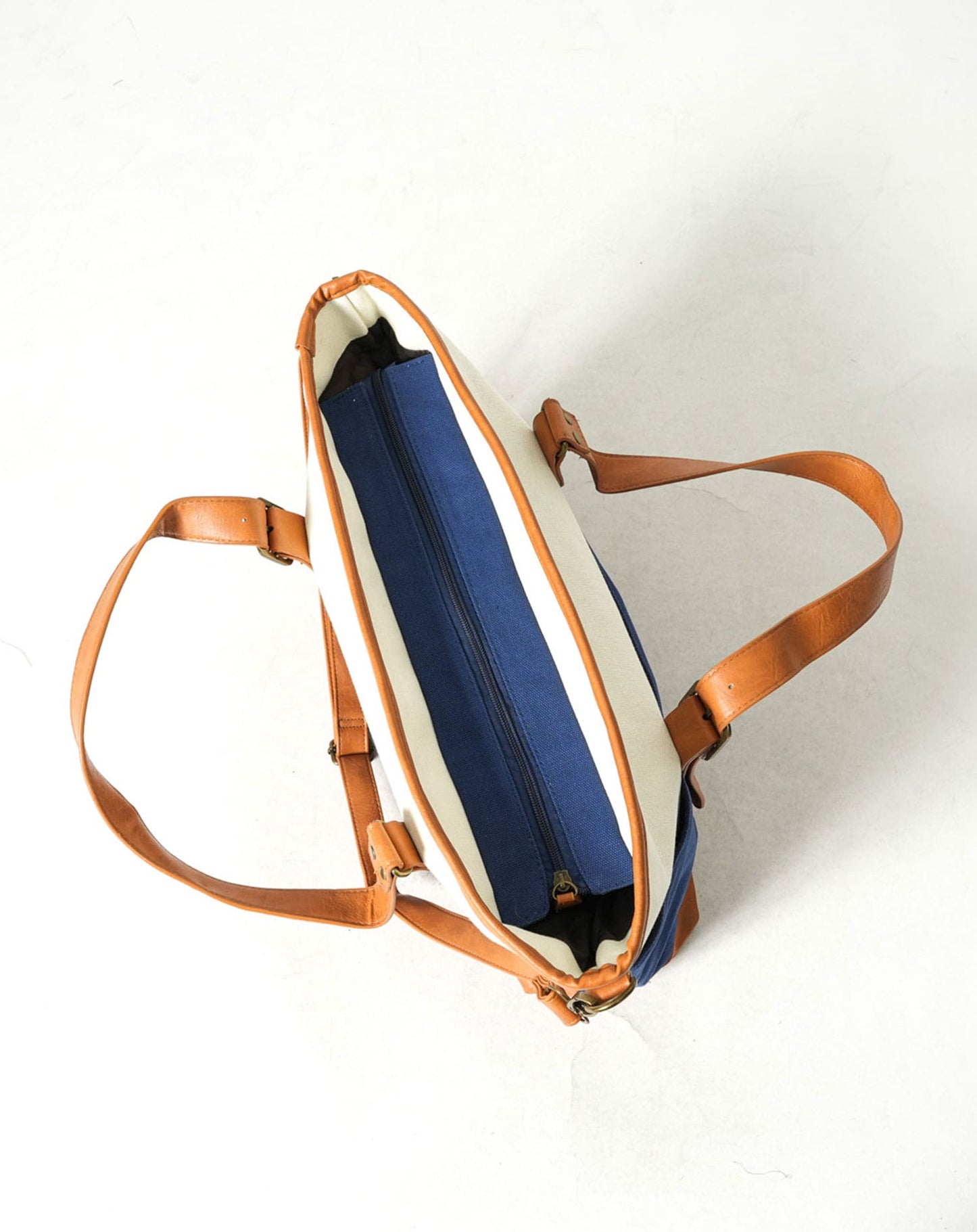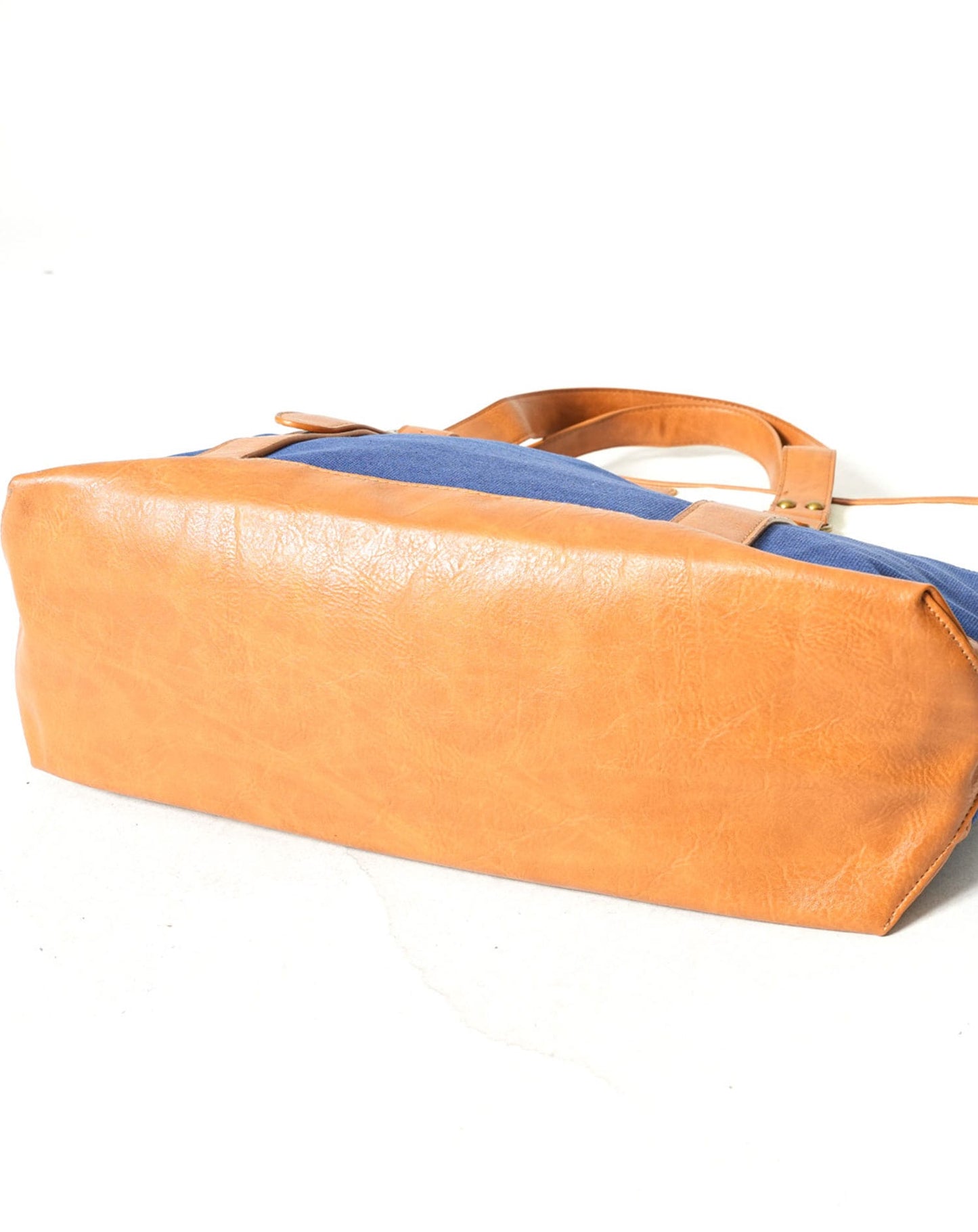 PUレザー×キャンバス切り替えファスナー付きショルダートートバッグ