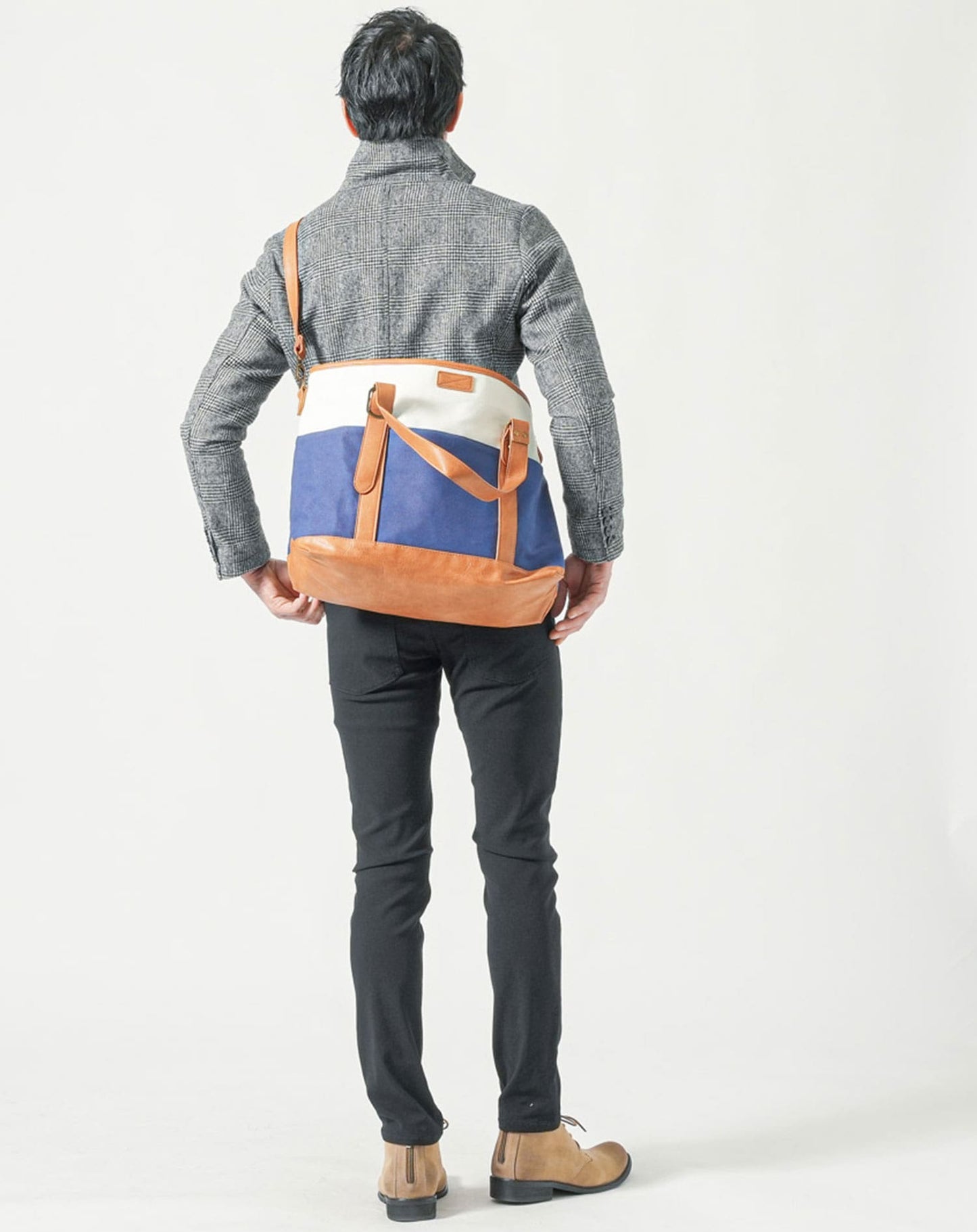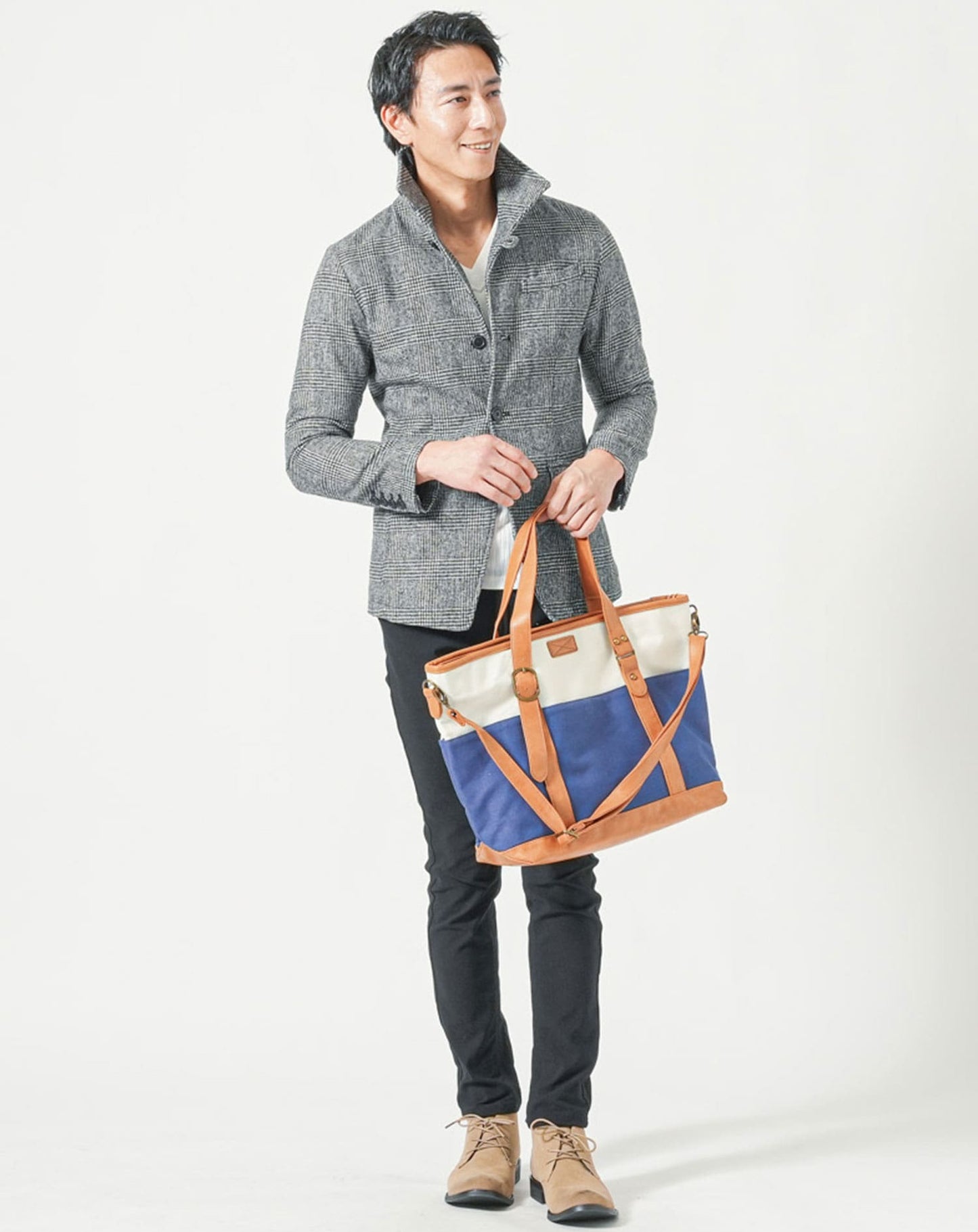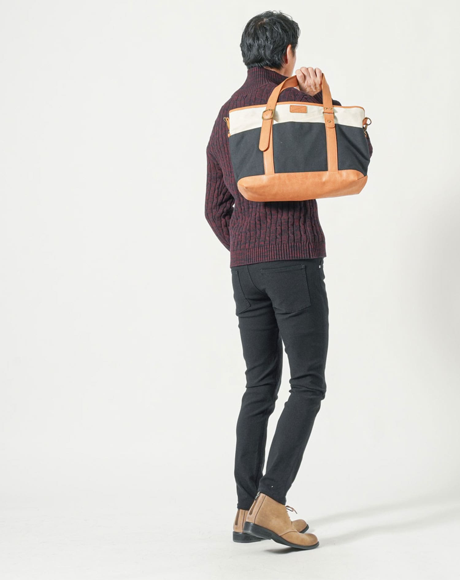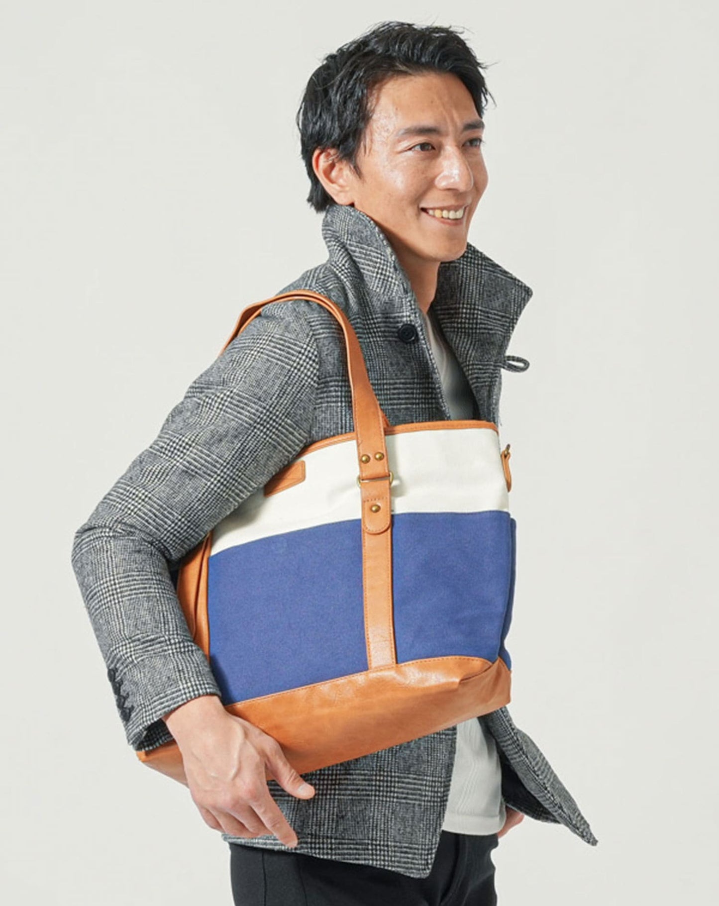 PUレザー×キャンバス切り替えファスナー付きショルダートートバッグは、シンプルながらも存在感を放つ2WAY仕様のデザインが魅力です。厚みのあるコットンキャンバスと柔らかなPUレザーの切り替えによって、上質感と耐久性を両立しており、日常使いや旅行に最適な大容量を誇ります。特に、型崩れしにくい仕様と調整可能なハンドルにより、肩掛けや斜め掛けのスタイルでも快適に使用できる点が利点です。休日のカジュアルスタイルや街中でのビジネスカジュアルにも違和感なくフィットし、シンプルな配色はどんなコーディネートとも調和します。外側の差し込みポケットや内側のファスナーポケット、小物収納ポケットも充実しており、日々の必需品を整理整頓して持ち運ぶことができるのも嬉しいポイントです。おしゃれで機能的なこのバッグは、スタイリッシュな30?50代男性にとって、必携のアイテムと言えるでしょう。