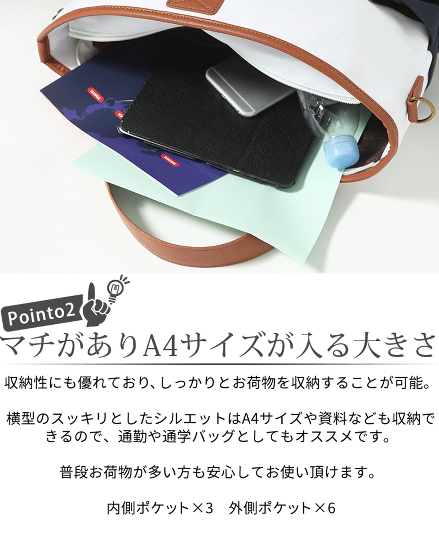 使い勝手の良いシンプルなデザインに、PUレザーの切り替えがアクセント。
