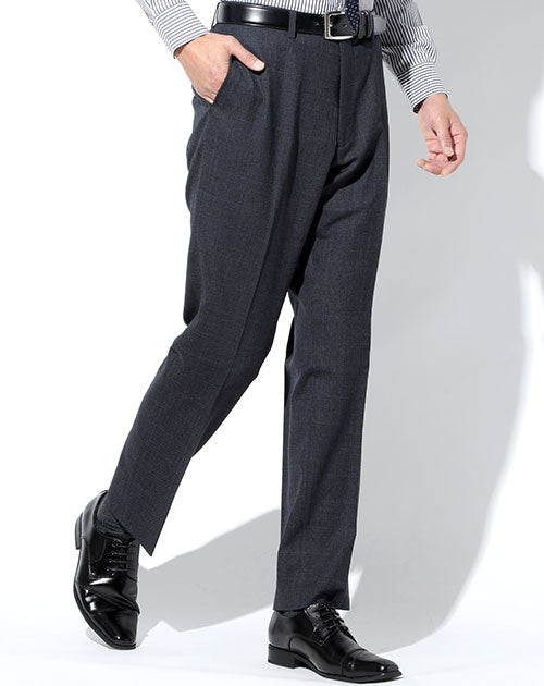 秋冬定番のウール素材のサキソニーのノータックスラックス。シルエットはややゆったりで穿きやすく落ち着きと貫録のある形。うっすらとしたチェック柄で程よいおしゃれ感のあるスラックスるです。 ストレッチ性がありストレスフリーな穿き心地。また、家庭洗濯に対応しているウォッシャブル機能も兼ね備え、メンテナンスとともに使いやすいスラックスとなっています。