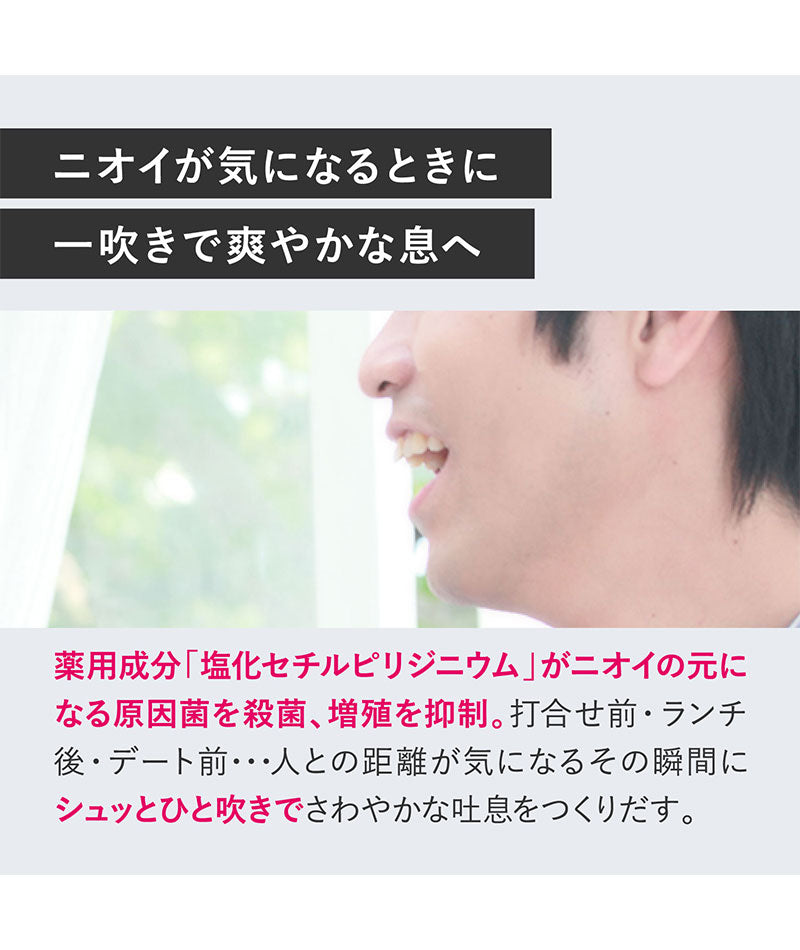 会議前、食事後、デート前…「あっ」と思ったその瞬間に1プッシュで口内ケアが出来ます。