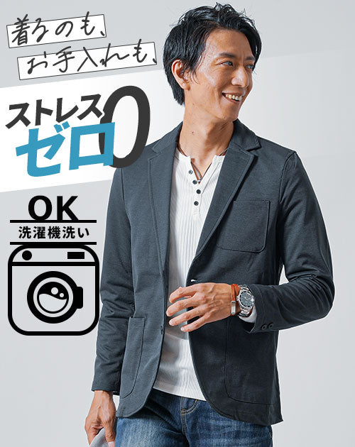 シンプルながらも機能性に優れたテーラードジャケットです。 身体の動きに合わせて縦にも横にも伸びるストレッチ素材なので動きやすくストレスフリーな着心地を味わうことが出来ます。 さらに汗を乾かしてくれるドライ加工にもなっており春や秋に最適な1枚です。 ご家庭の洗濯機でも洗えてシワににもなりにくいので、お手入れのストレスも0なテーラードジャケットとなっております。 スリムな細身シルエットなので、スタイリッシュなコーディネートが完成します。 シンプルな無地ジャケットなので着回しも効いてとても便利です。