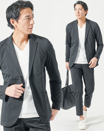 セットアップ 洗える長袖テーラードジャケット×イージーパンツ 2枚セット