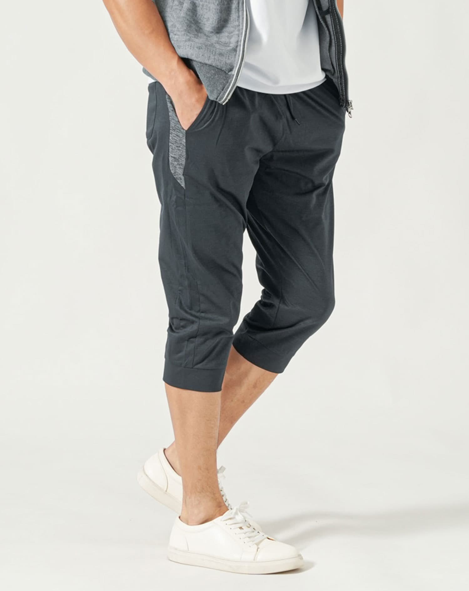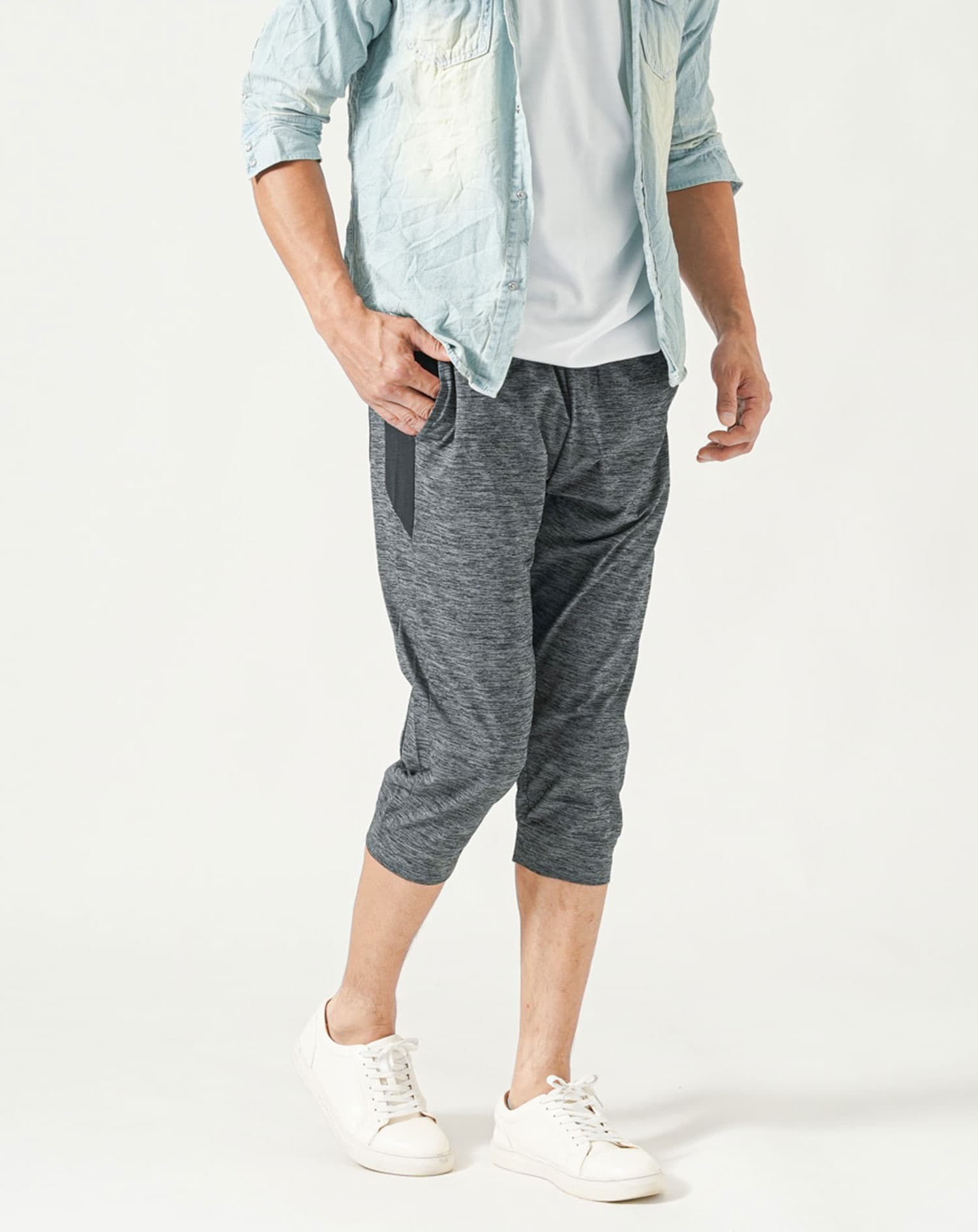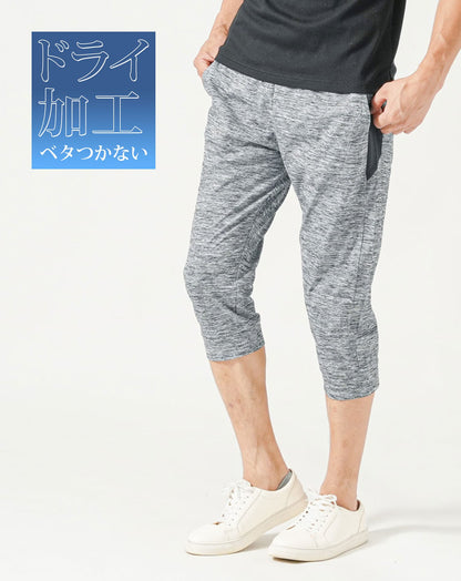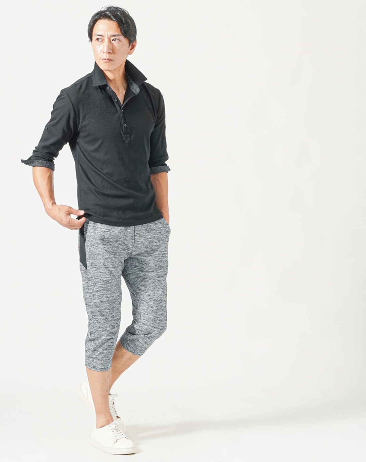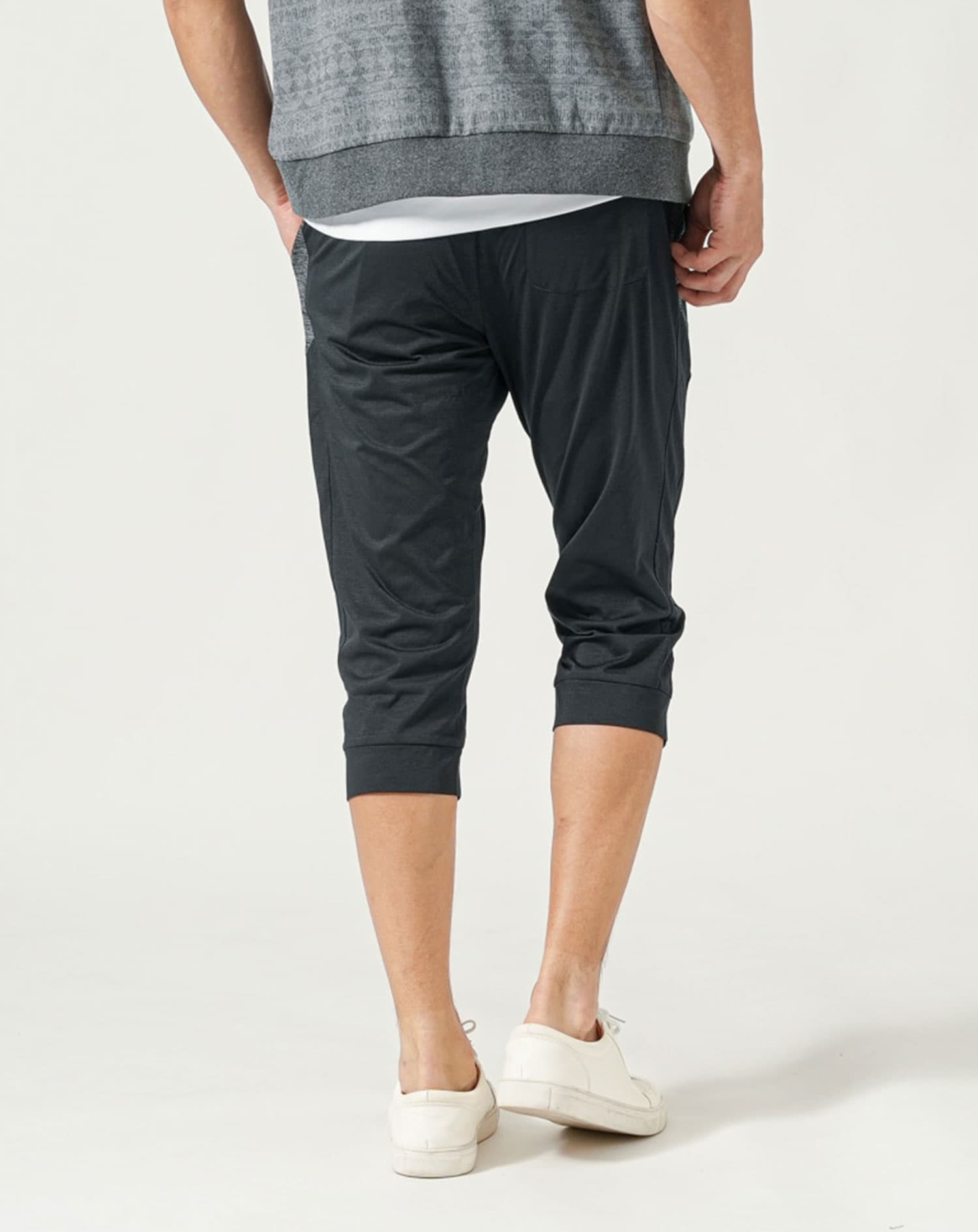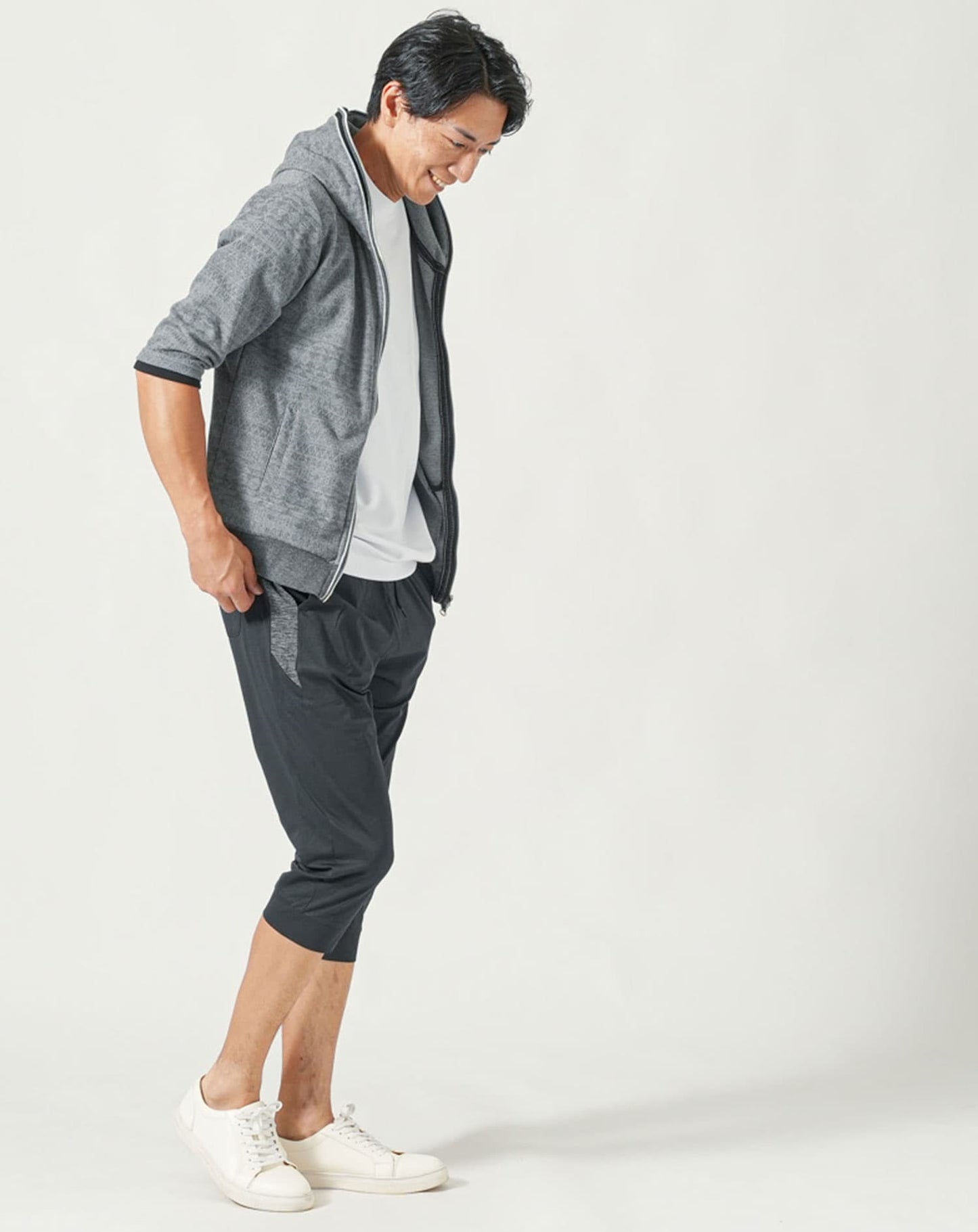ドライストレッチ杢天竺クロップドパンツは、薄手の生地を使用し、吸汗速乾性に優れたドライ加工が施されています。そのため、暑い季節でも快適な着心地が続き、汗をかいても安心です。さらに、ウエスト部分にはゴムとドローコードが付いており、細身でスリムなシルエットながらも動きやすさを確保。おしゃれな杢感が程よいアクセントとなり、シンプルでありながら都会的な印象を与えます。このパンツは、普段使いだけでなく、スポーツシーンでも活躍する一着です。コーディネートには、涼しげなTシャツやポロシャツと合わせることで、リラックスしたカジュアルスタイルを楽しめます。また、サンダルやスニーカーとの相性も良く、大人の男性にふさわしいスタイリッシュな装いが完成します。