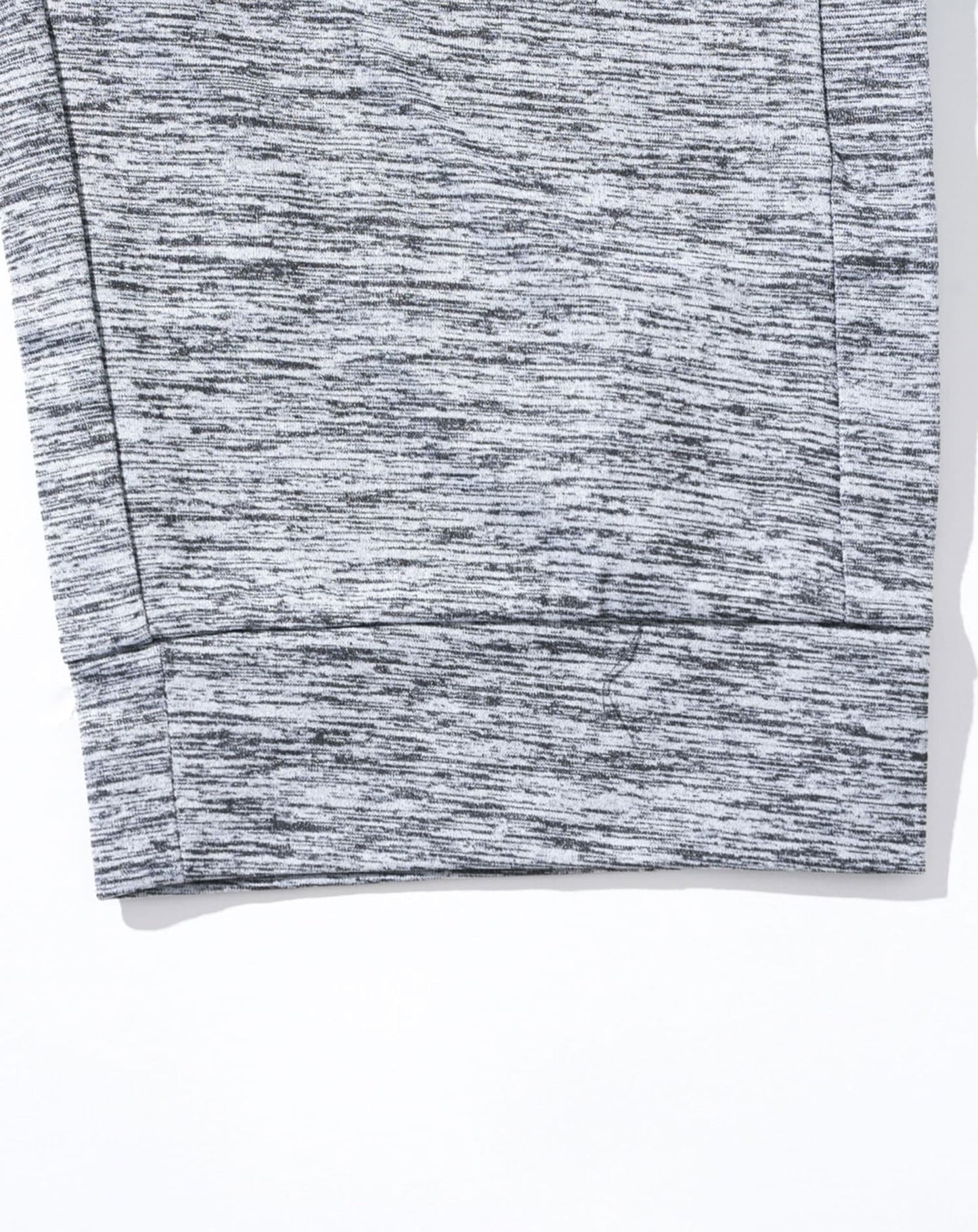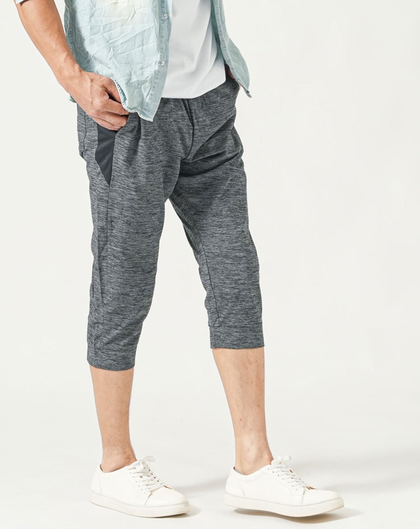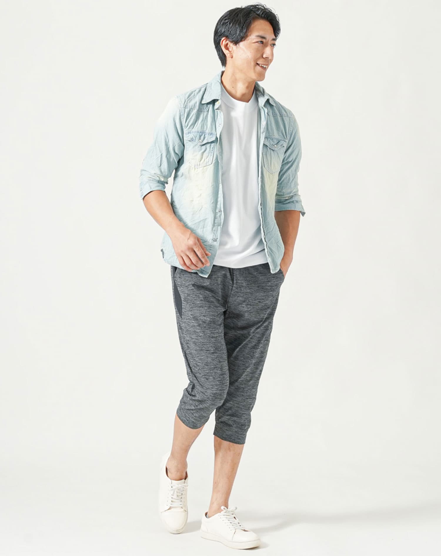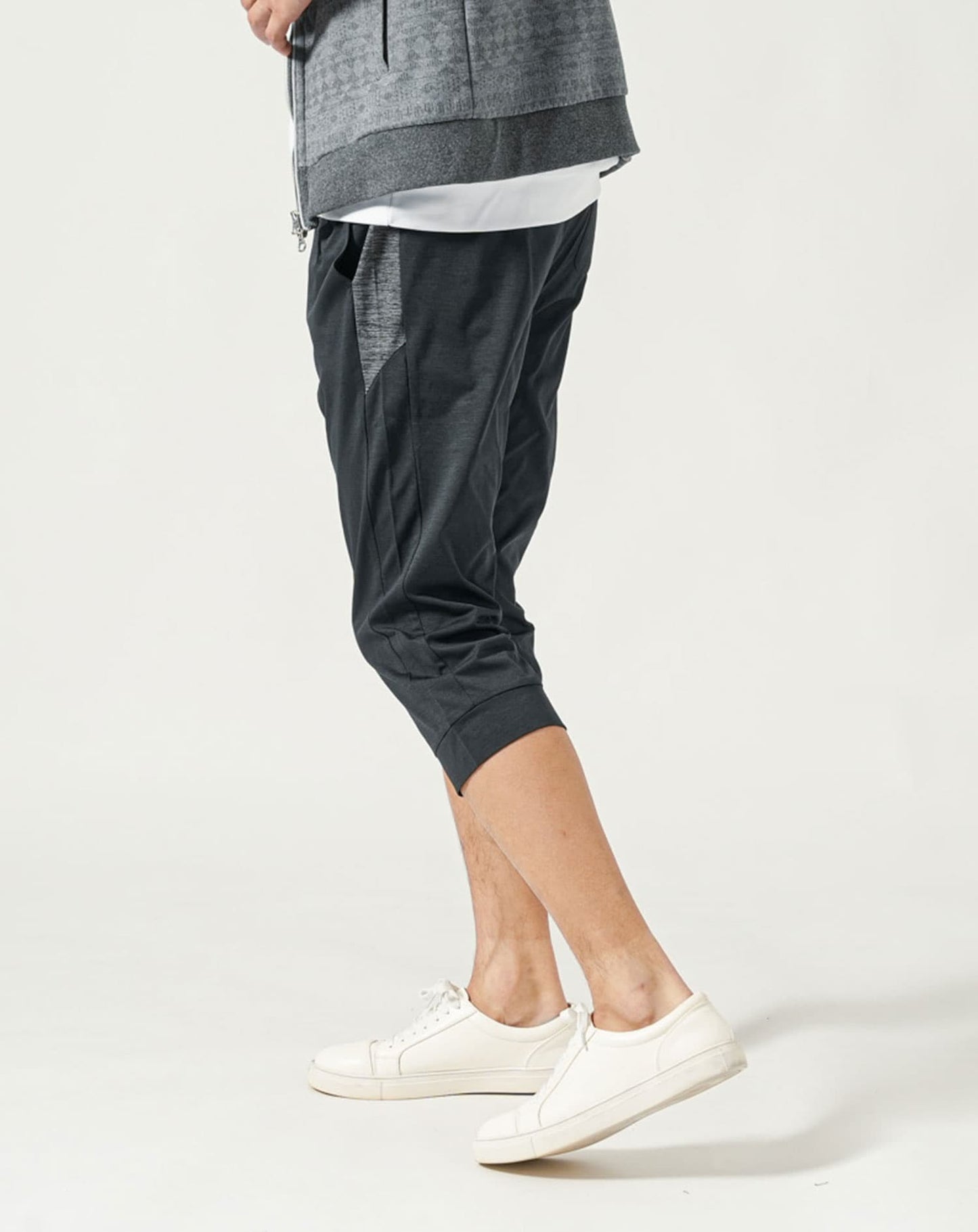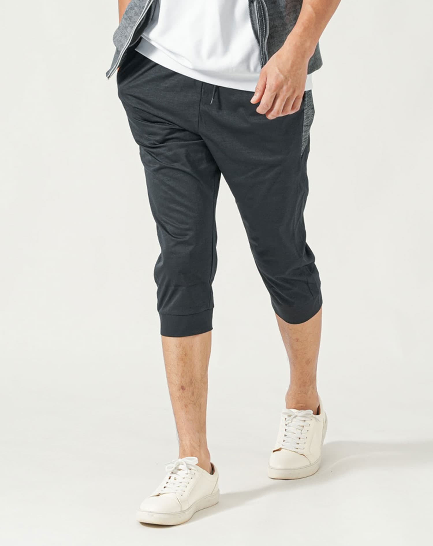 ドライストレッチ杢天竺クロップドパンツは、薄手の生地を使用し、吸汗速乾性に優れたドライ加工が施されています。そのため、暑い季節でも快適な着心地が続き、汗をかいても安心です。さらに、ウエスト部分にはゴムとドローコードが付いており、細身でスリムなシルエットながらも動きやすさを確保。おしゃれな杢感が程よいアクセントとなり、シンプルでありながら都会的な印象を与えます。このパンツは、普段使いだけでなく、スポーツシーンでも活躍する一着です。コーディネートには、涼しげなTシャツやポロシャツと合わせることで、リラックスしたカジュアルスタイルを楽しめます。また、サンダルやスニーカーとの相性も良く、大人の男性にふさわしいスタイリッシュな装いが完成します。