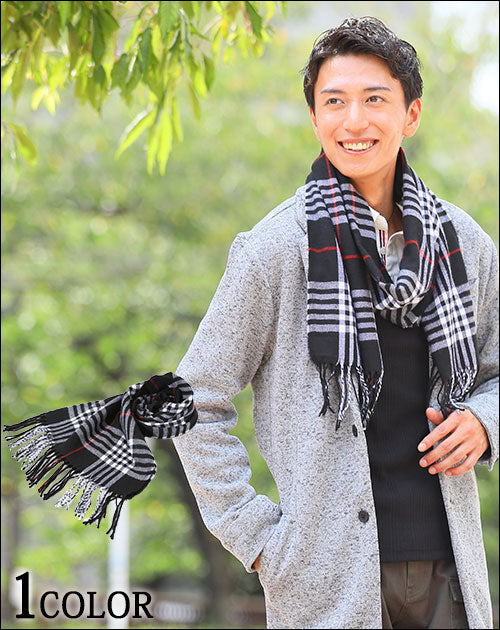 上品さがありブラック×レッドカラーが大人感を作り出してくれるストール。