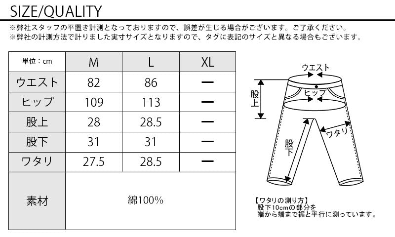 パンツの裾の長さ、パンツの筒回りの太さなどを考えて、