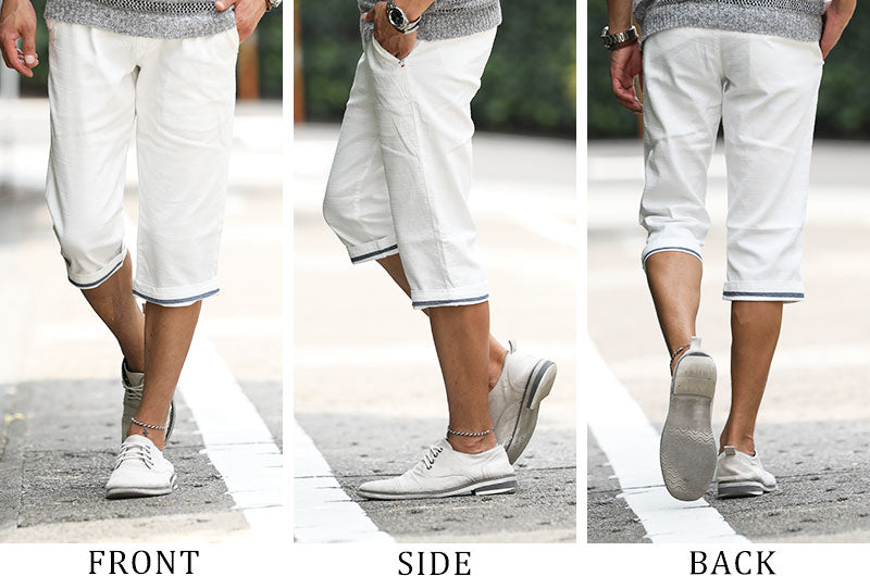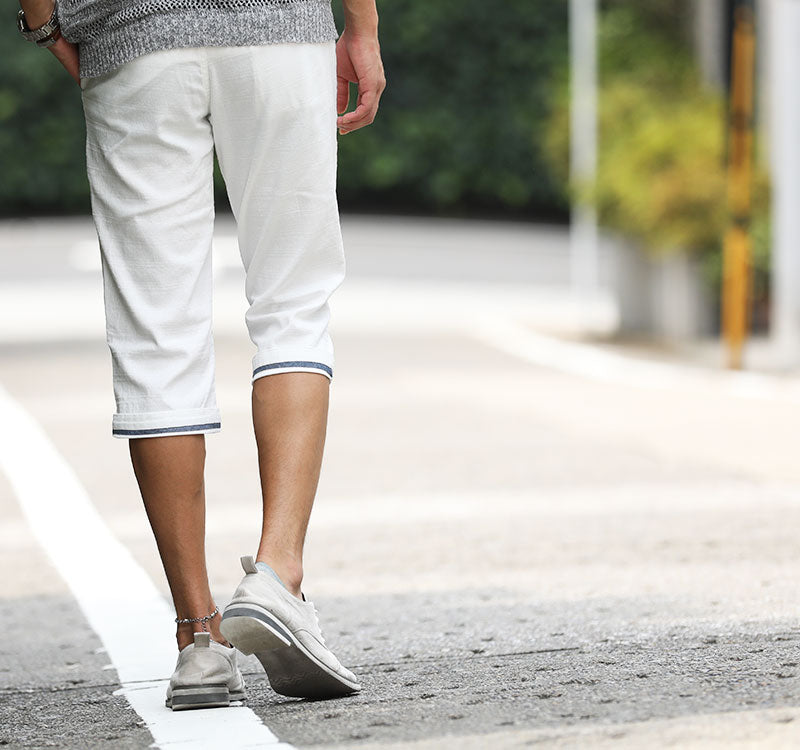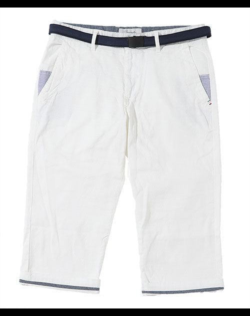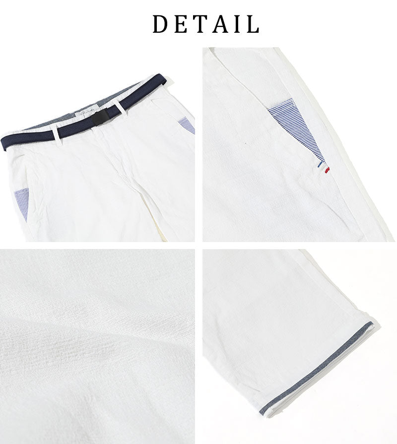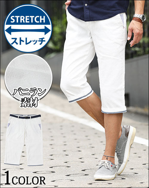 【爽やかな生地感とストレッチで快適に過ごせちゃう♪】ストレッチバニラン素材ベルト付きクロップドパンツ