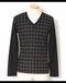 チェックデザイン切り替えVネックニットソー