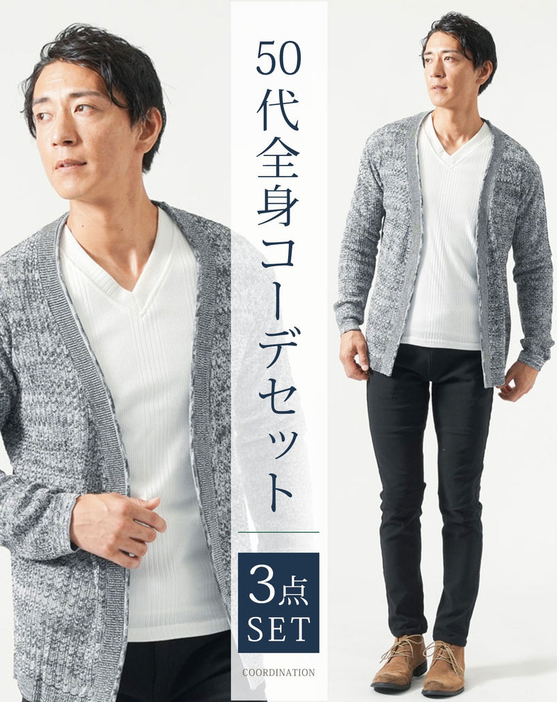 デートやちょいワルなシーンでも自信を持って着こなせるため、服選びに迷う方にも最適です。普段スーツが多い方にも、私服選びのハードルを下げ、年相応の上品でスマートなルックを楽しんでもらえます。全身を迷わず揃えられるこのセットは、手軽におしゃれを楽しむための理想的な選択です。