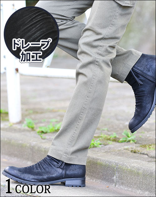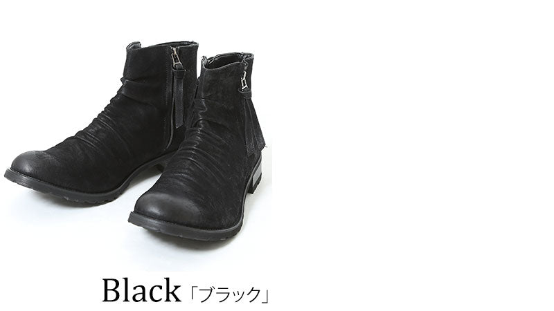 【男らしく高級感のあるデザインが男の品格を上げる】両サイドジップドレープデザインPUレザーブーツ
