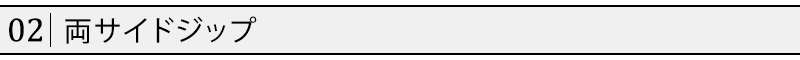 脱ぎ履きのしやすい両サイドジップになっています。更にジップには持ち手がついており、ジップの上げ下げが楽にできるんです!持ち手のデザインがワンポイントにもなり、よりシャレ感を作ってくれますよ♪
