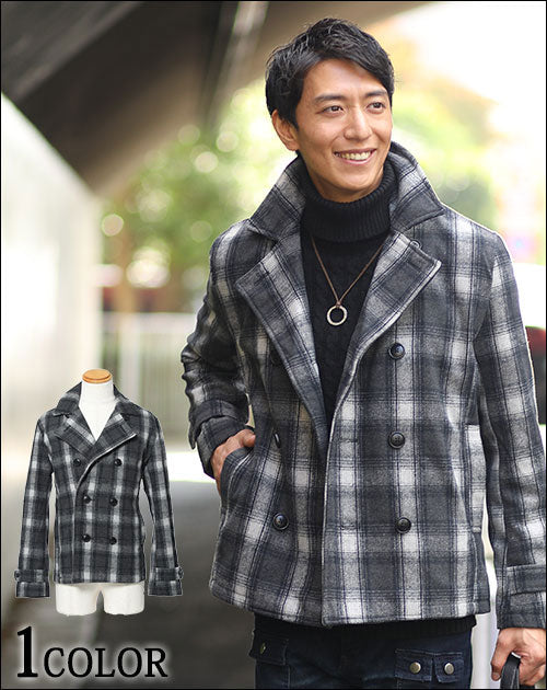 【周りと差の付く存在感あるオシャレアウター】オンブレチェックデザインメルトンPコート