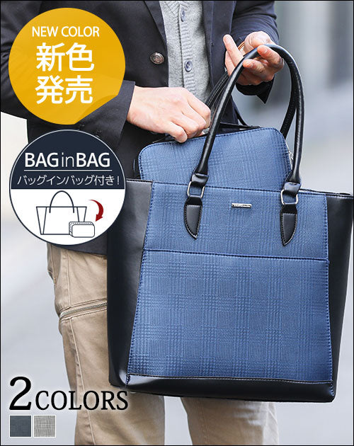 グレンチェックデザインバッグインバッグ付きトートバッグ