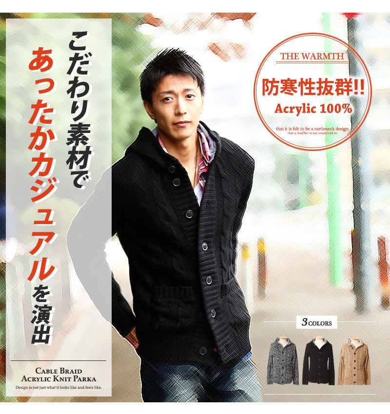 ケーブル編みアクリルニットパーカーはいかがでしたか??