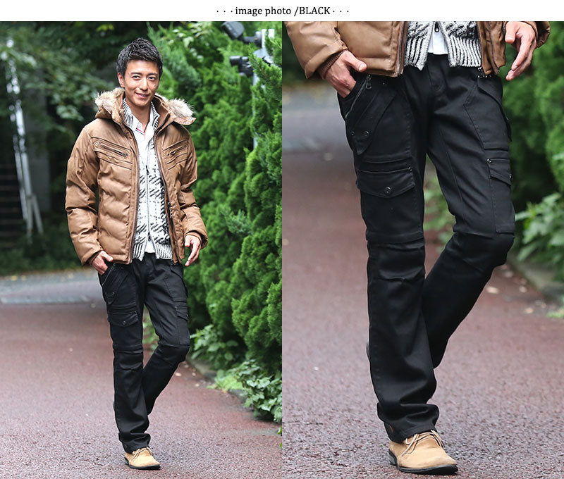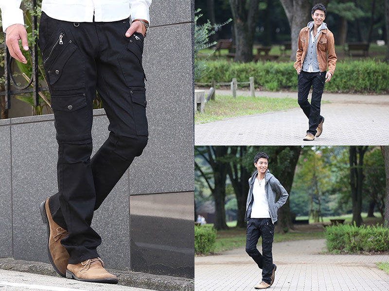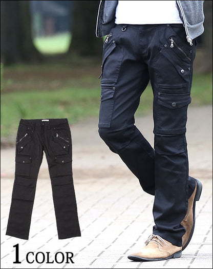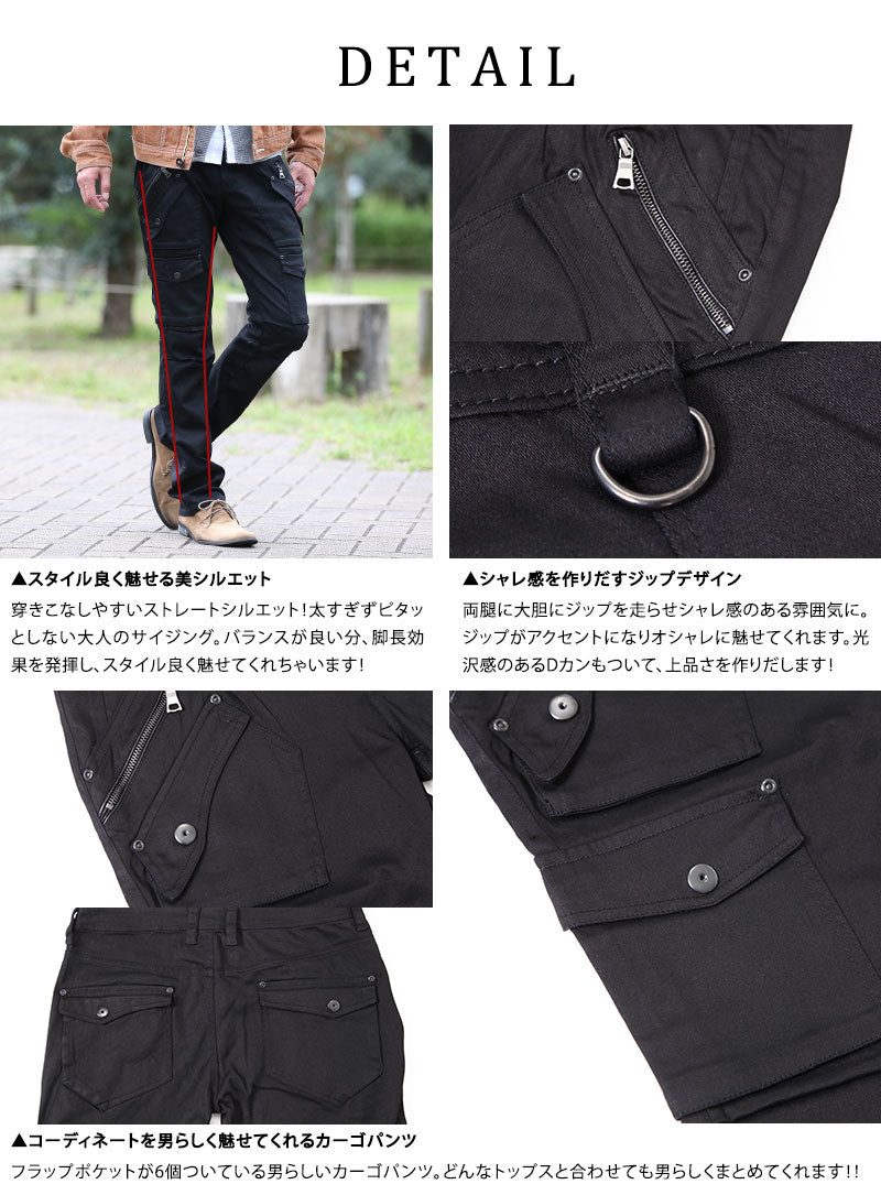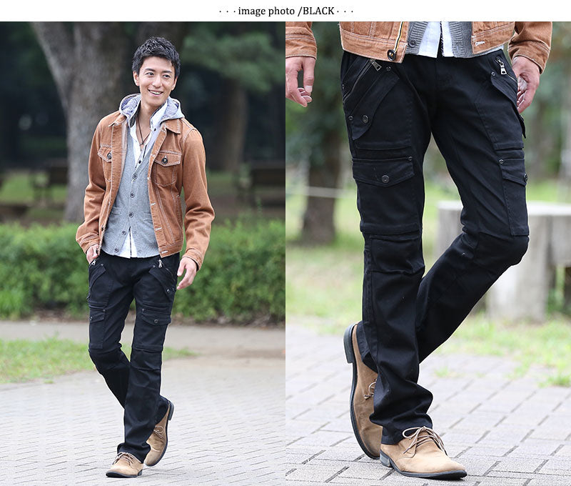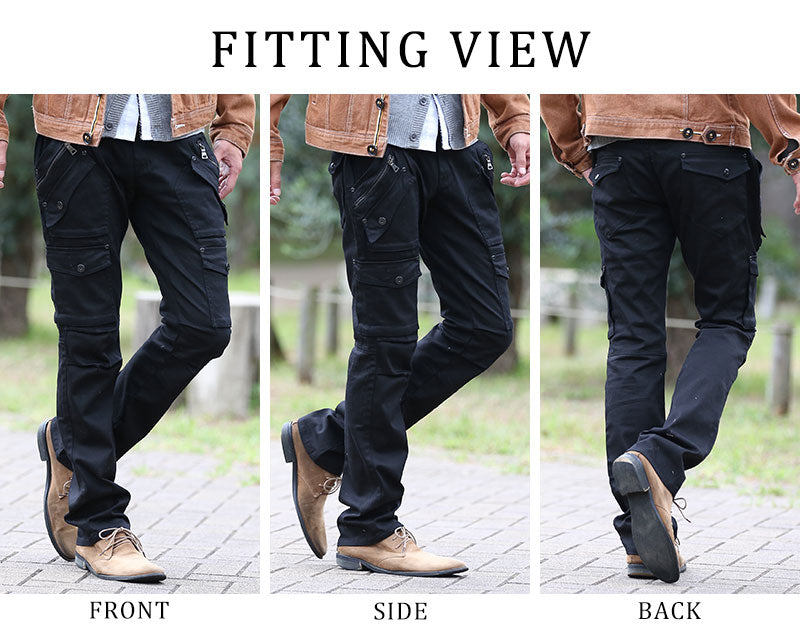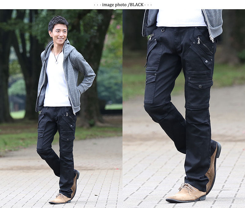 【どんなスタイルも男らしくキメてくれる美シルエットパンツ!】ジップデザイン美シルエットカーゴパンツ