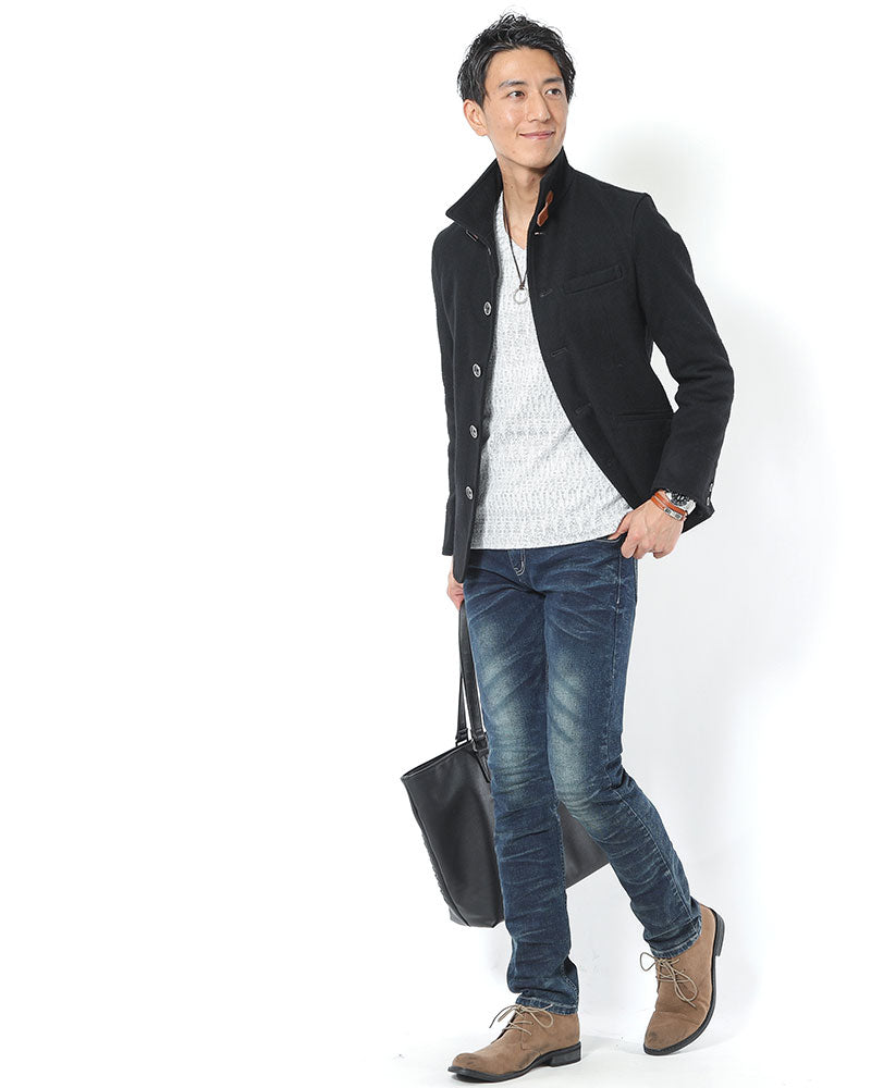 • レザーベルト付きメルトンスタンドコート