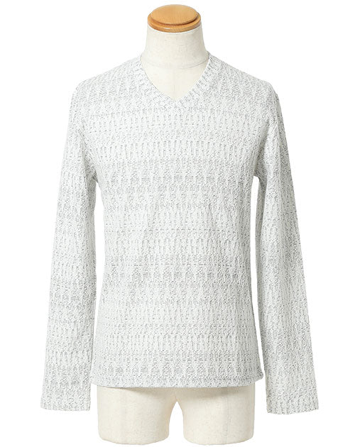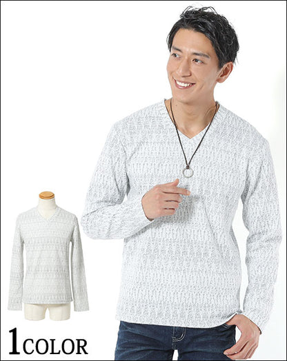 ヘリンボーンジャガードデザインVネックTシャツ