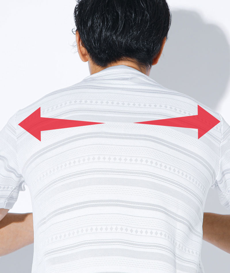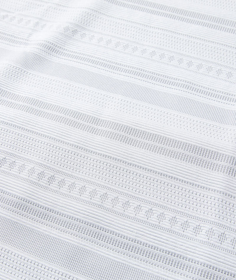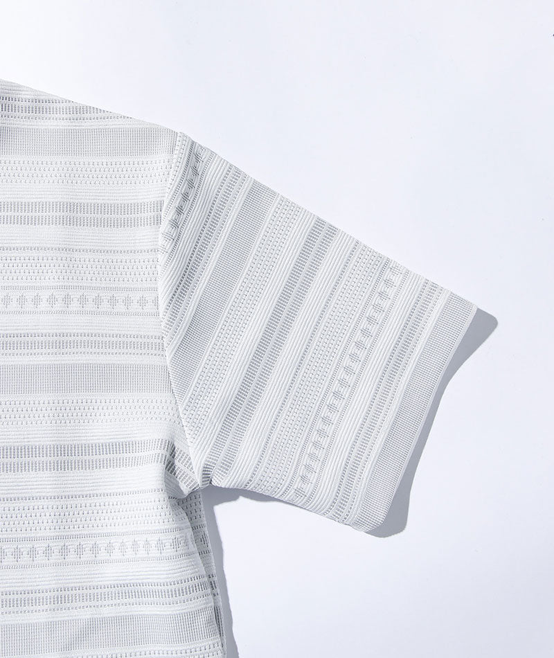さり気ないジャガードボーダー柄をあしらった半袖Tシャツです。主張しすぎず、それでいて程よい存在感のあるデザインなので、1枚で着てもインナーに入れてもオシャレに魅せてくれます。