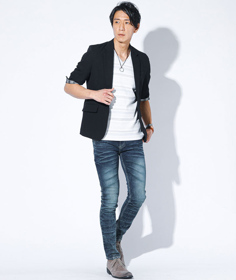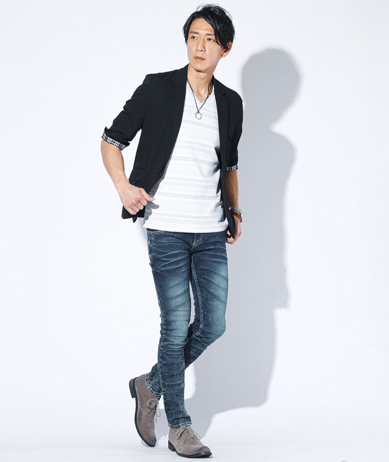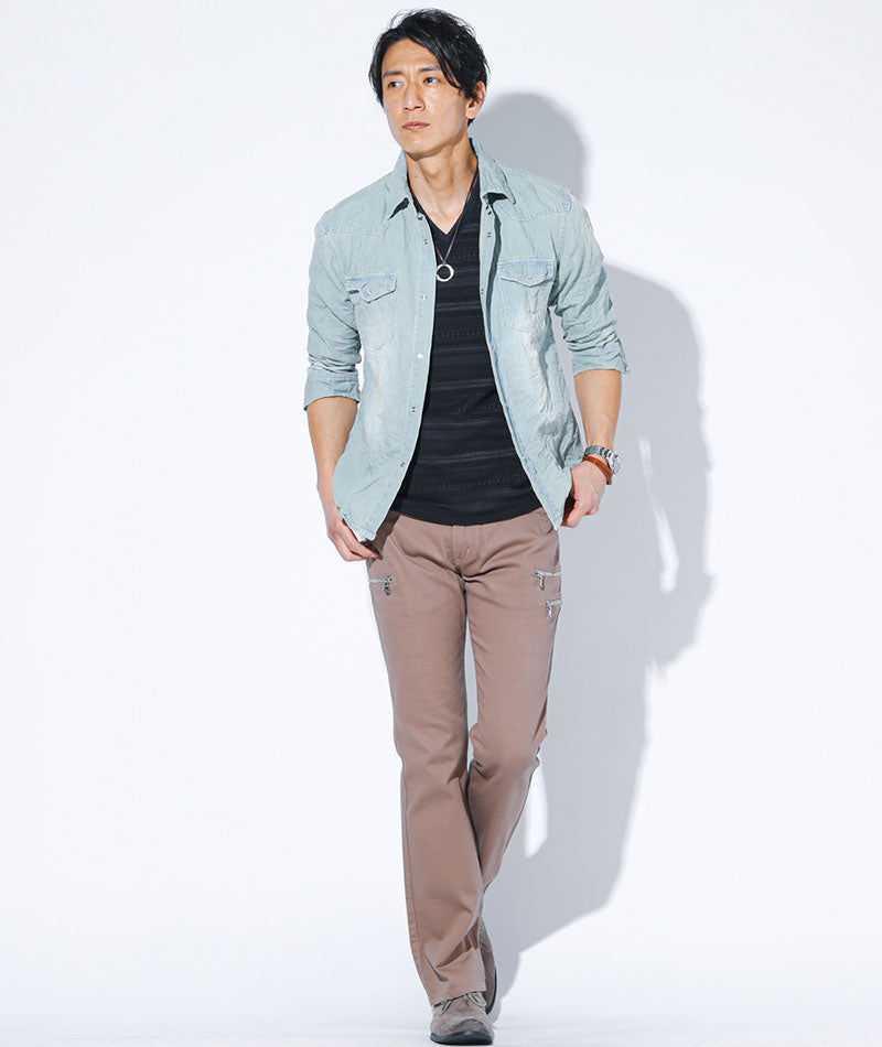 スリムな細身シルエットなので、スタイリッシュなコーディネートが完成します。ストレッチが効いているので細身ながらも楽に着こなすことができます。シンプルになりがちな春や夏コーデにぴったりな1枚です。