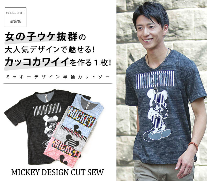 無地やデザインなど様々な種類がありますが、その中でも毎年MENZ-STYLEで人気のミッキーデザインカットソーが登場しました!!