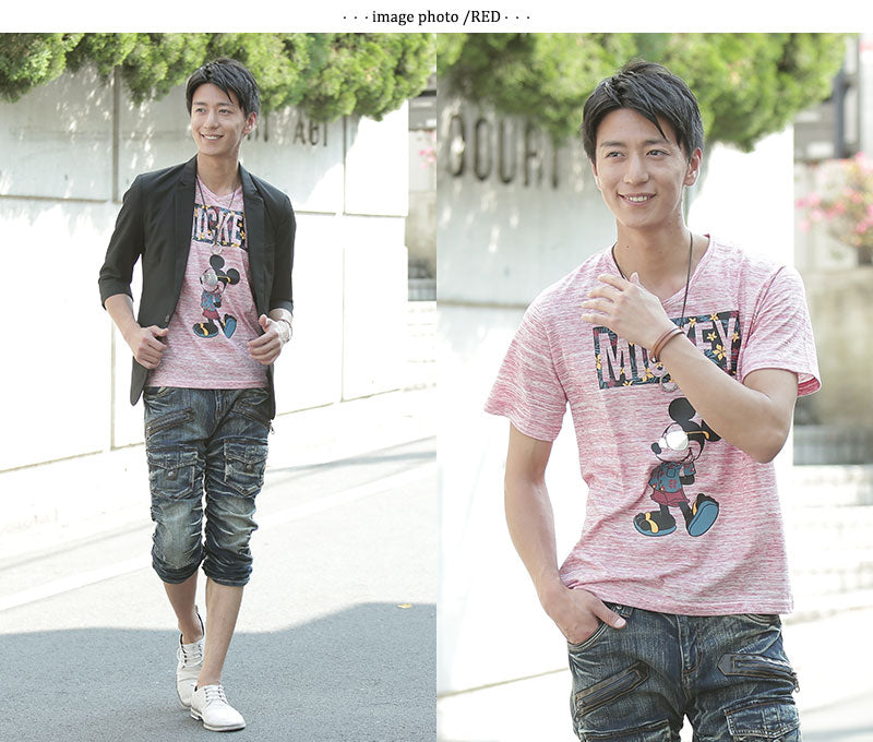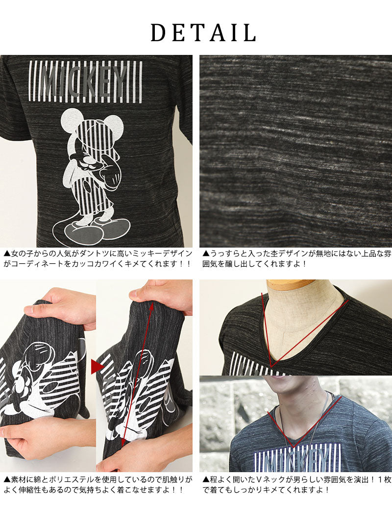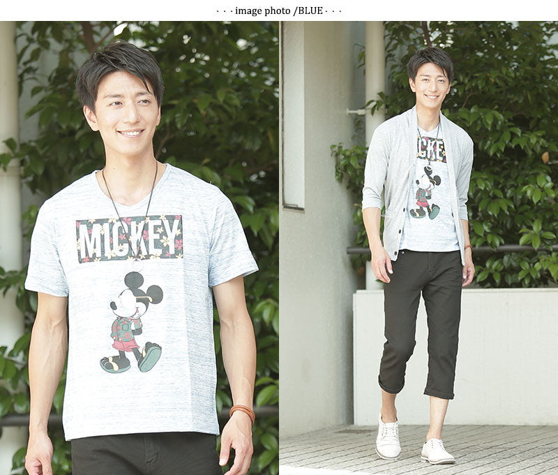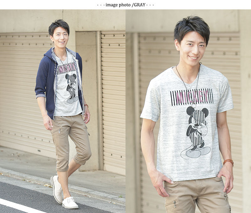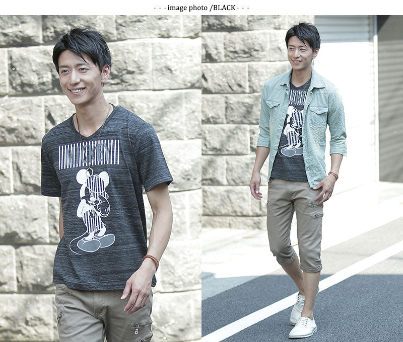 ミッキーデザインを施したこのカットソーは女の子からの人気も高く、さらに杢デザインが無地にはないコジャレ感を演出してくれちゃいます!