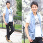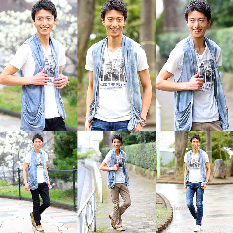 この3点セットはパンツを合わせるだけでコーディネートが完成しますが、もちろんジレ以外のアイテムとも相性抜群!