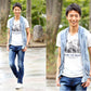 シャツと合わせた大人爽やかな着こなし!!さらに同系色のデニムと合わせることで、カーディガンのデザインを引き立たせているんです!