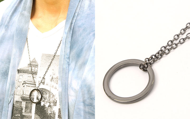 シンプルでスッキリとしたシルバーリングのネックレス。首元から男らしく、かつ大人っぽさも演出してくれます!