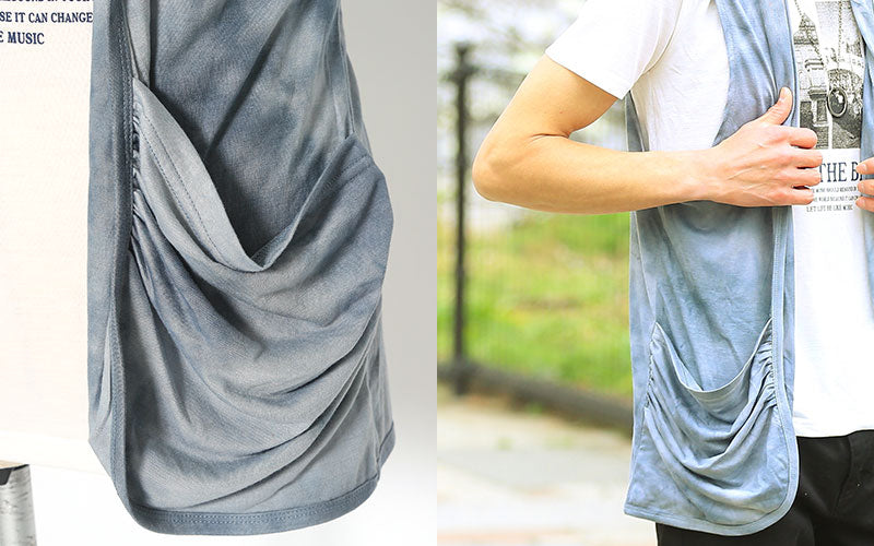 ポケット部分にヒダのような上品さを演出するドレープデザインを施しました!ジレだけどきっちりしすぎない程よく緩いカジュアルな印象に。