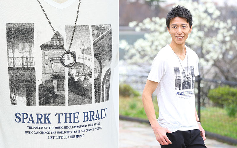 男らしさを上げてくれるVネックデザイン。ネックレスと作る首元のVゾーンで上品さもプラスしています!
