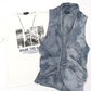 • ムラ染めジレ×半袖プリントカットソー×シルバーリングネックレス 3点セット