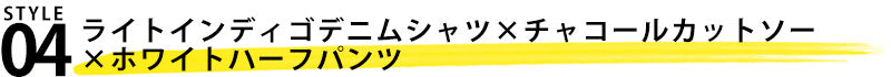 「デニムシャツには爽やかな色合いのボトムスと合わせて欲しいな!!」