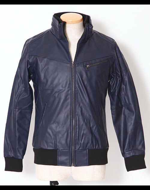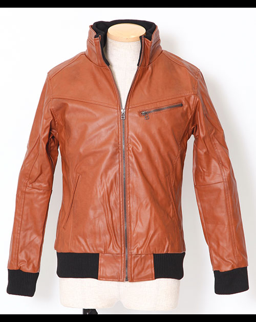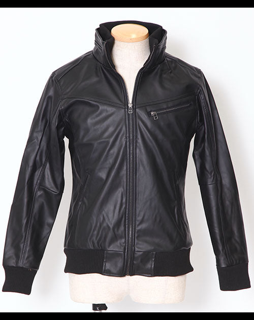 リブ付きで首回りも防寒性抜群♪PUレザースタンドジャケット