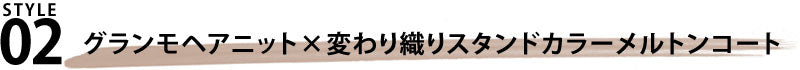 グランモヘアニットをチラ魅せすることで、コーディネートがグッと上品なものになります。