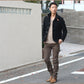 素材感が違うアウターと組み合わせる事でメリハリがつき、