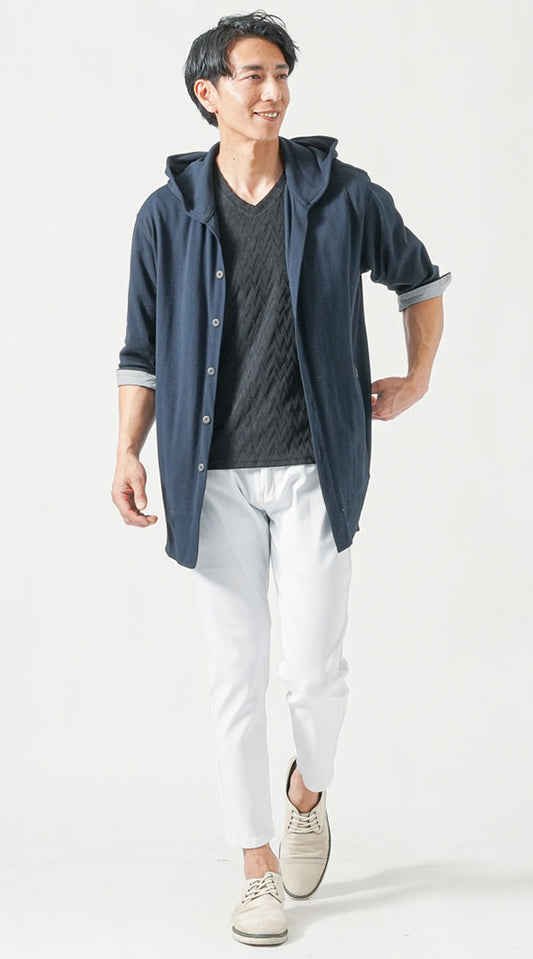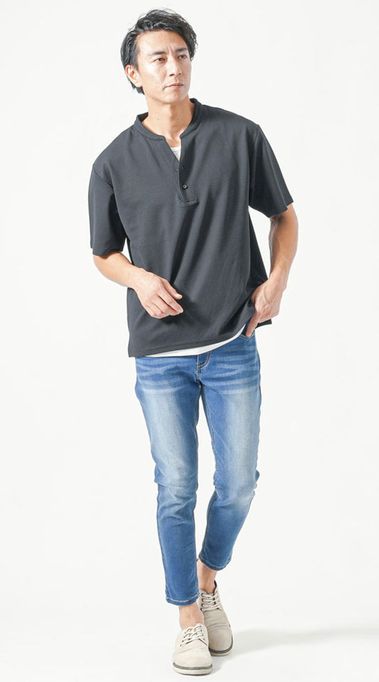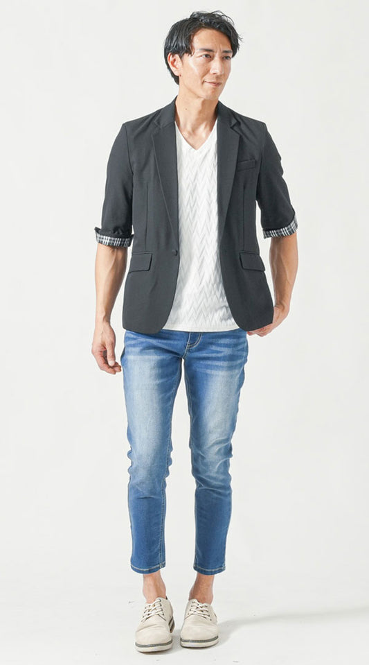 ノーブルなカジュアルスタイルを実現する「デニムジャケット」と「ストライプシャツ」、そして「デニムパンツ」のコーディネートは、シンプルながらも存在感を強調する理想的な組み合わせです。デニムジャケットは、タフな印象を与えつつ、ストライプシャツが織りなす縦のラインでスマートなシルエットを演出します。この二つのアイテムを組み合わせることで、都会的でノーブルな印象を与えつつ、デニムパンツが全体のコーディネートを引き締め、バランスの良いスタイルを実現します。また、ストライプの色や幅を選ぶことで、ビジネスカジュアルとしても活用できる汎用性があります。休日のカジュアルな外出や、ちょっとした集まりにまで幅広く対応できるこのコーディネートは、ノーブルな印象を求める30?50代の男性に最適です。シューズにはローファーやスニーカーを合わせることで、自分らしいスタイルを楽しむことができるでしょう。