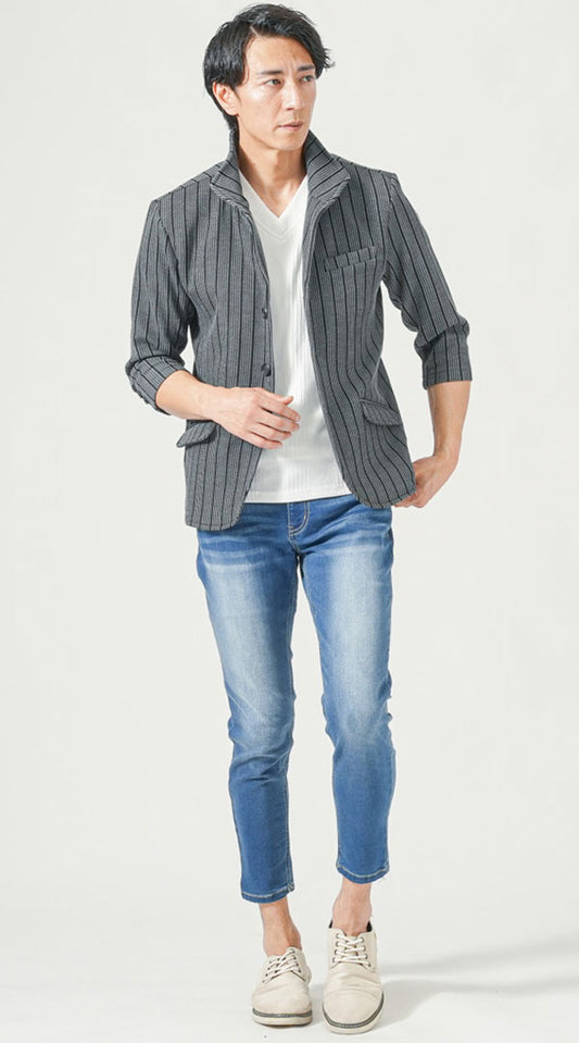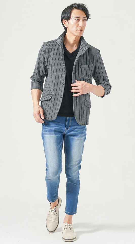 デニムジャケット ストライプシャツ デニムパンツ snp_xr0667のコーディネート例