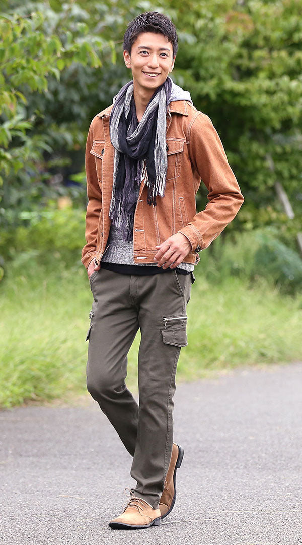 デニムジャケット ニット カーゴパンツ ストール snp_mmm0398のコーディネート例